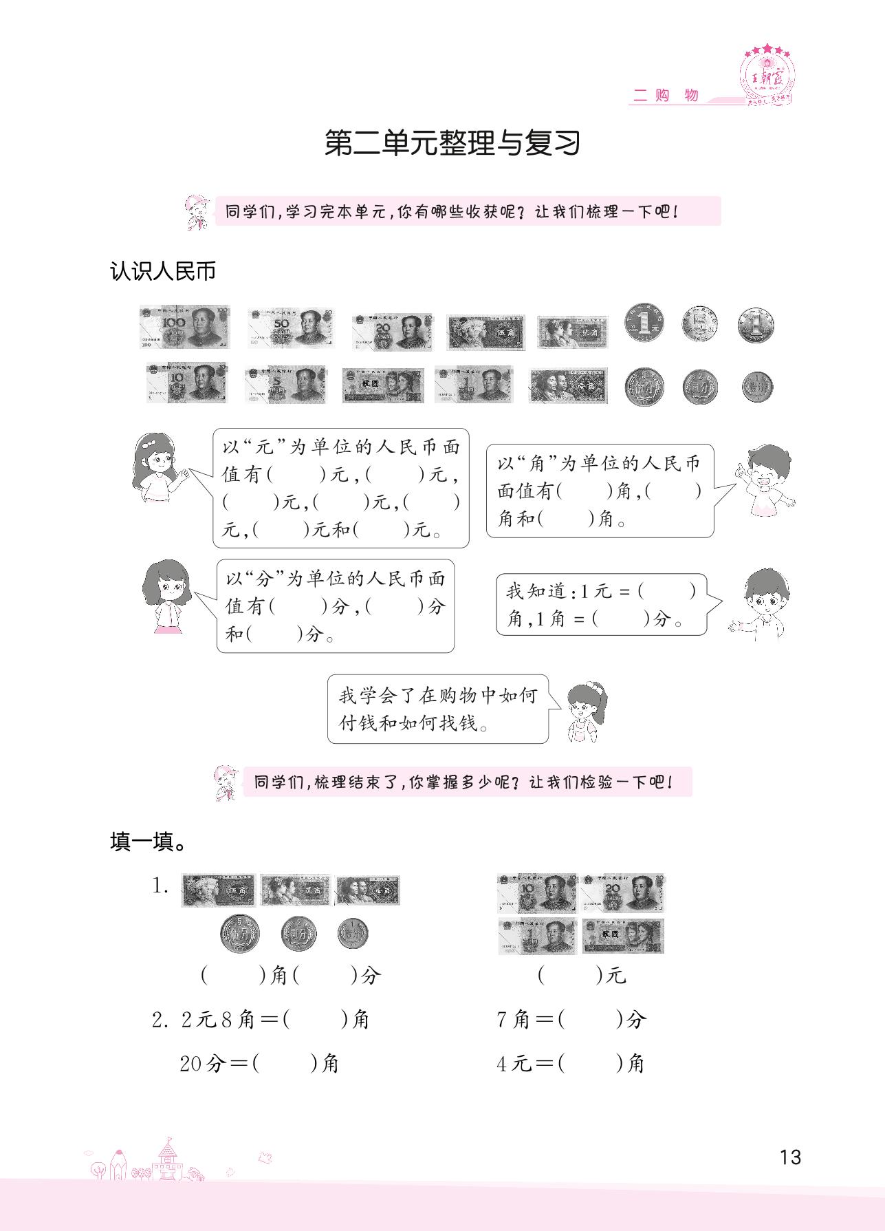 2022上册二年级数学北师版 二 购物——第二单元整理与复习
