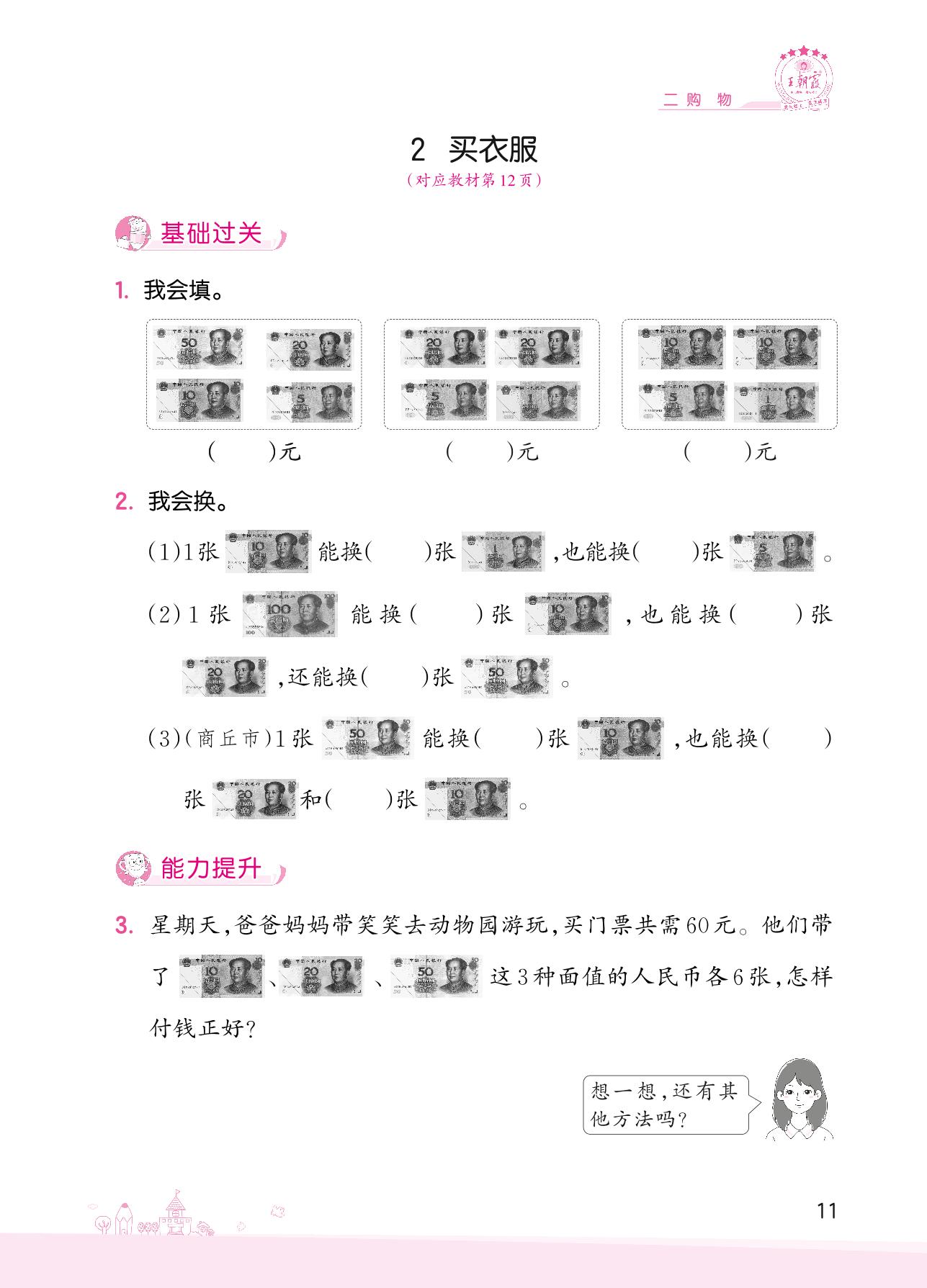 2022上册二年级数学北师版 二 购物——2 买衣服