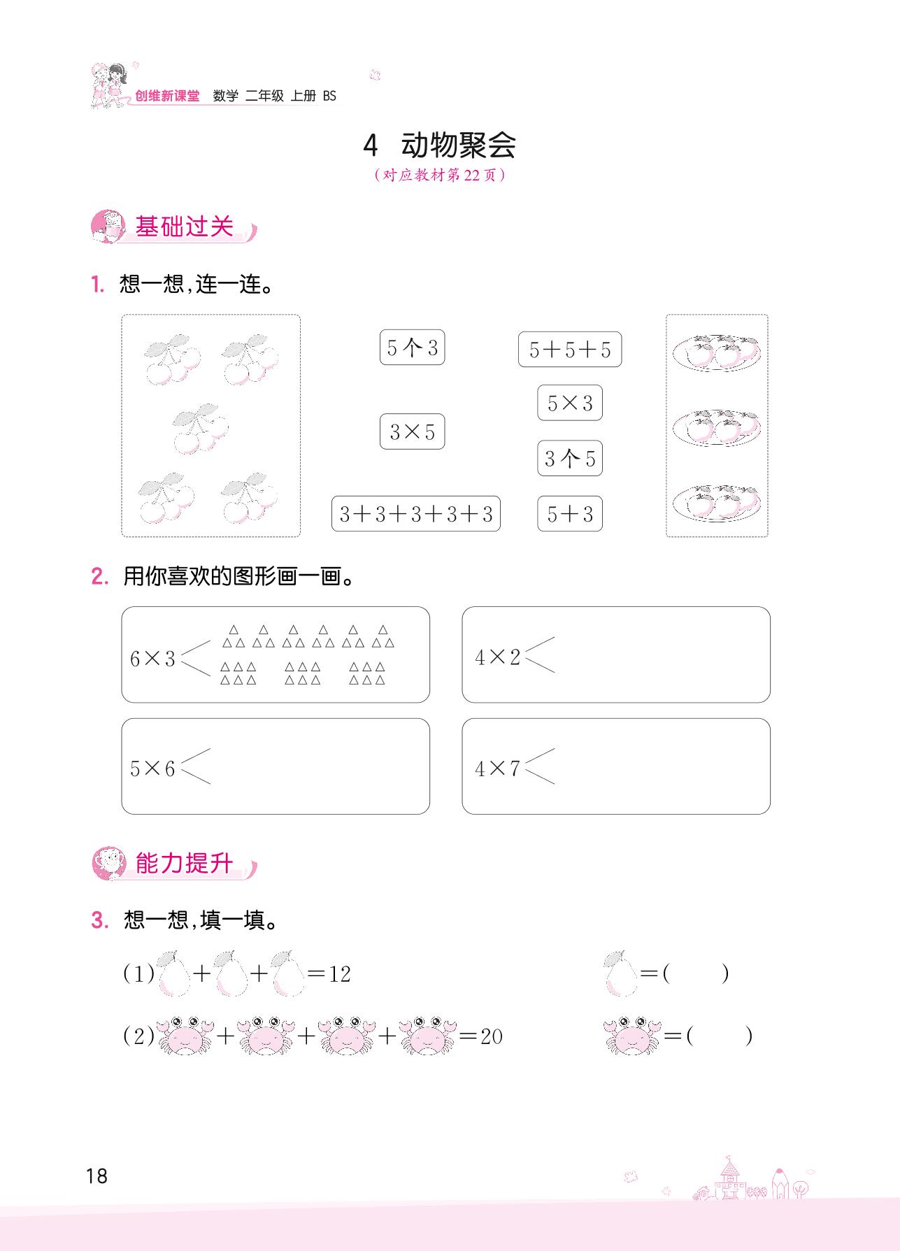 2022上册二年级数学北师版 三 数一数与乘法——4 动物聚会