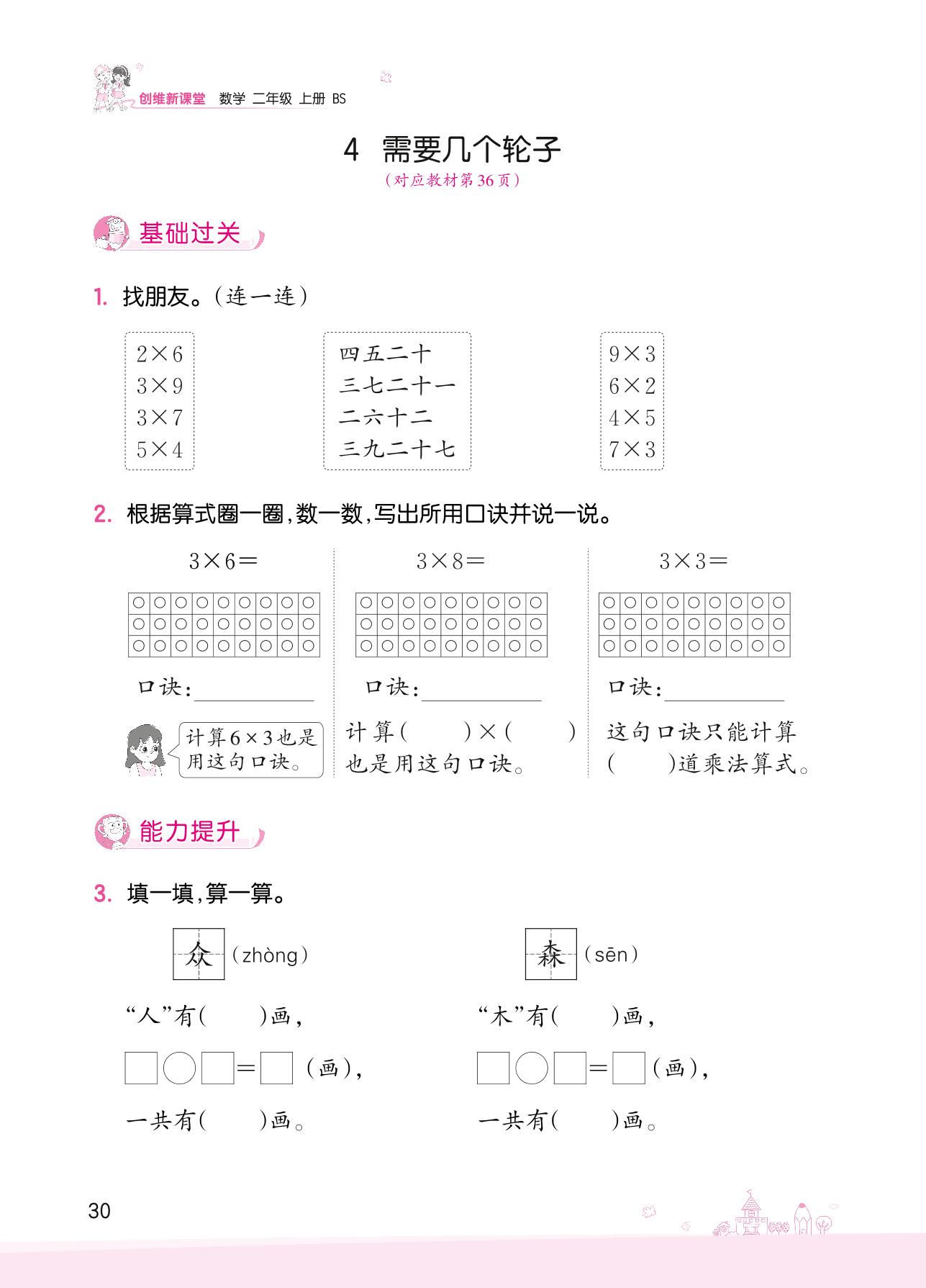 2022上册二年级数学北师版 五 2~8的乘法口诀——4 需要几个轮子