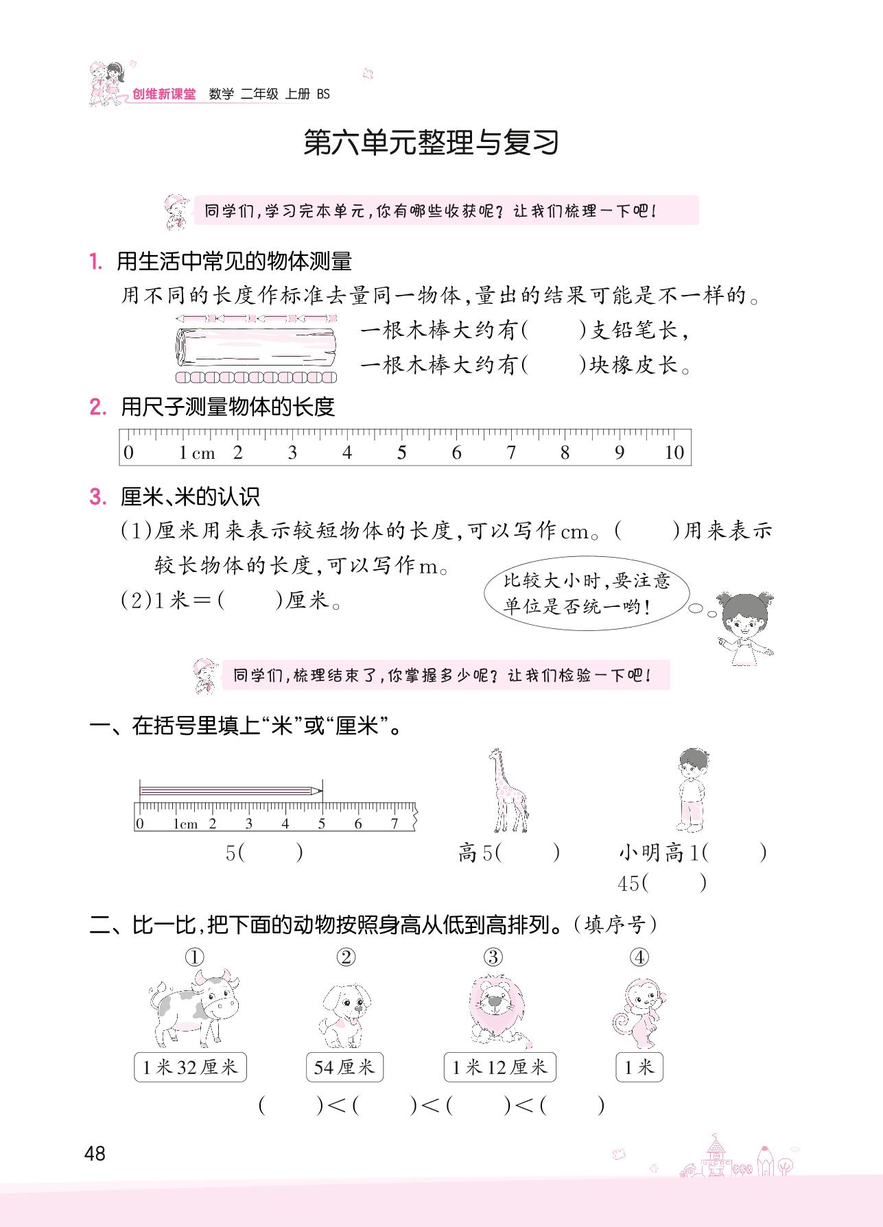 2022上册二年级数学北师版 六 测量——第六单元整理与复习