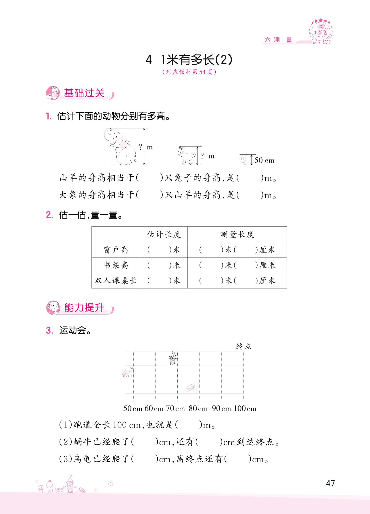 2022上册二年级数学北师版 六 测量——4 1米有多长(2)