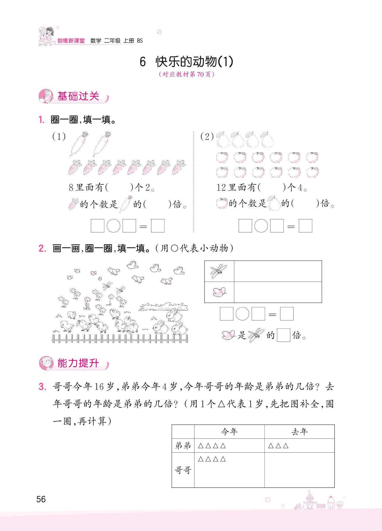 2022上册二年级数学北师版 七 分一分与除法——6 快乐的动物(1)