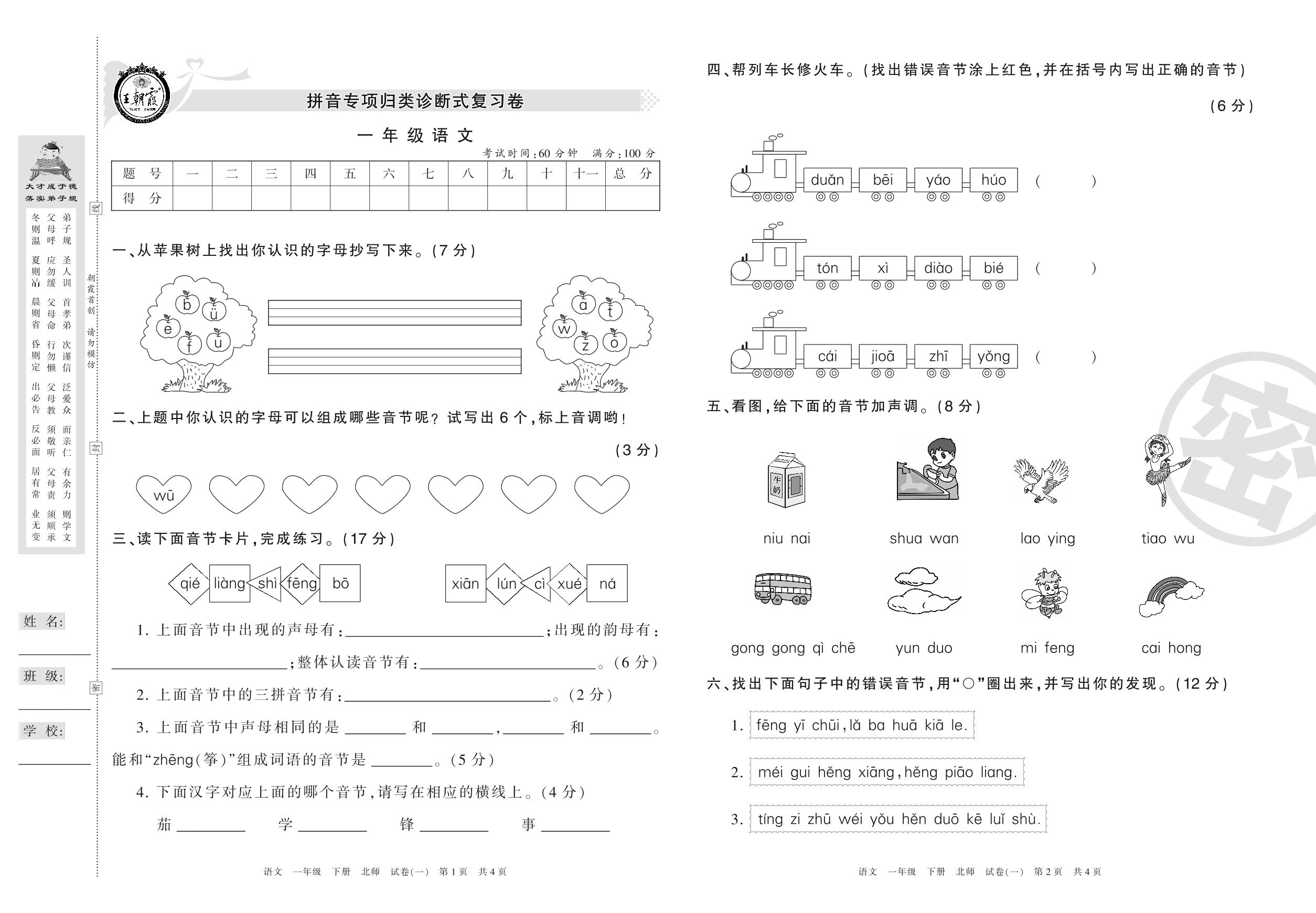 王朝霞期末专项卷一年级下册语文(北师版)_R210731183920【1】