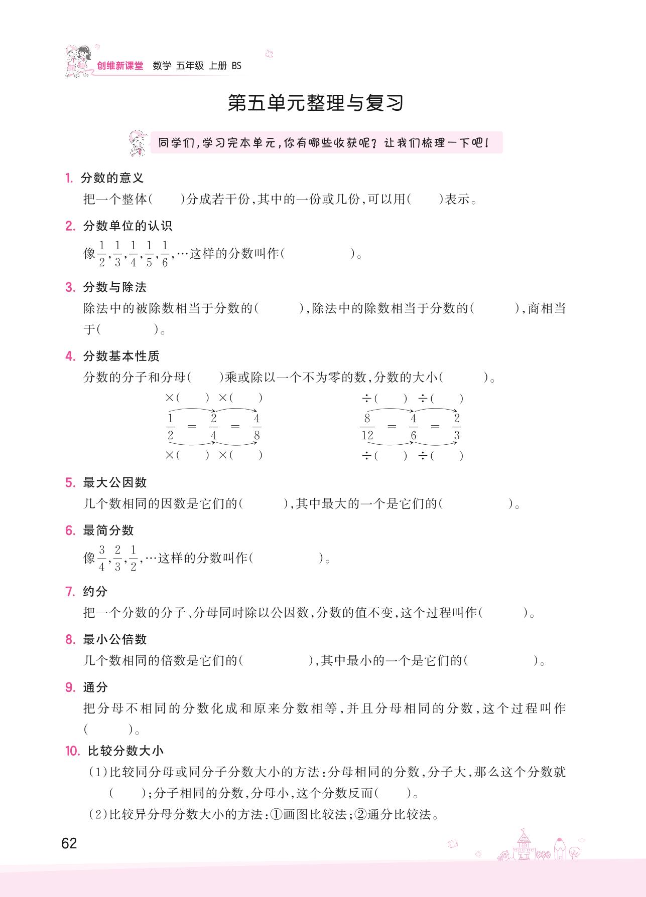 2022上册五年级数学北师版 五 分数的意义——第五单元整理与复习