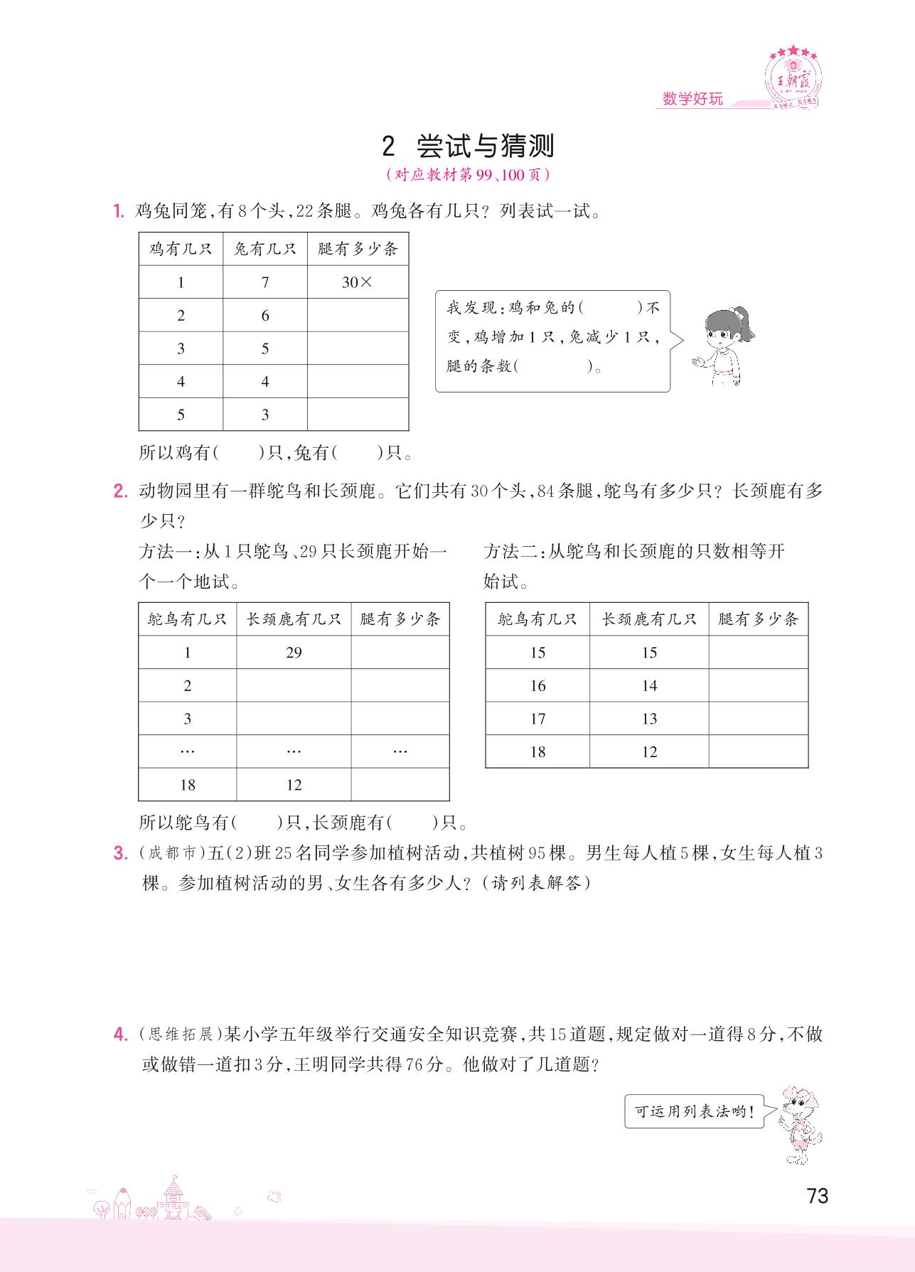 2022上册五年级数学北师版 数学好玩——2 尝试与猜测