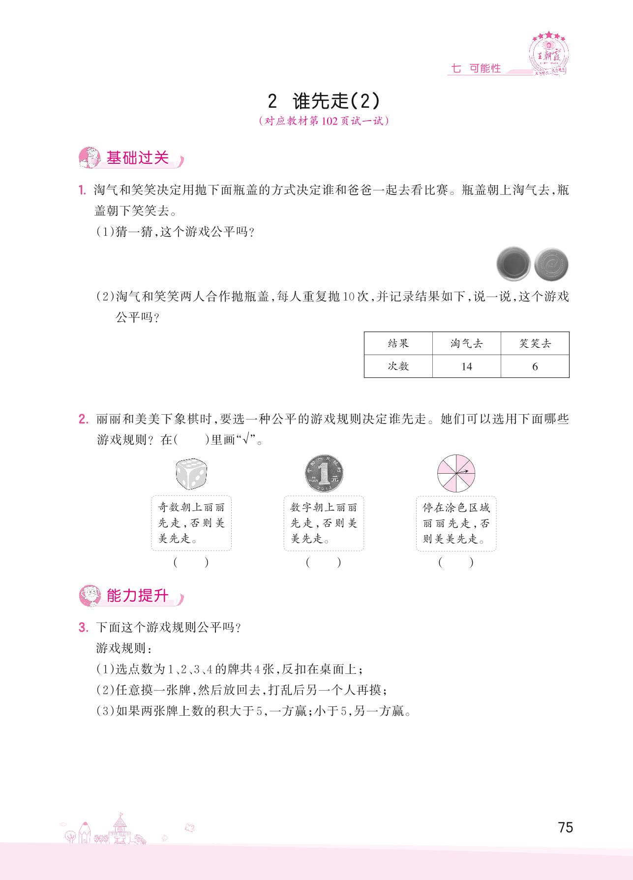 2022上册五年级数学北师版 七 可能性——2 谁先走(2)