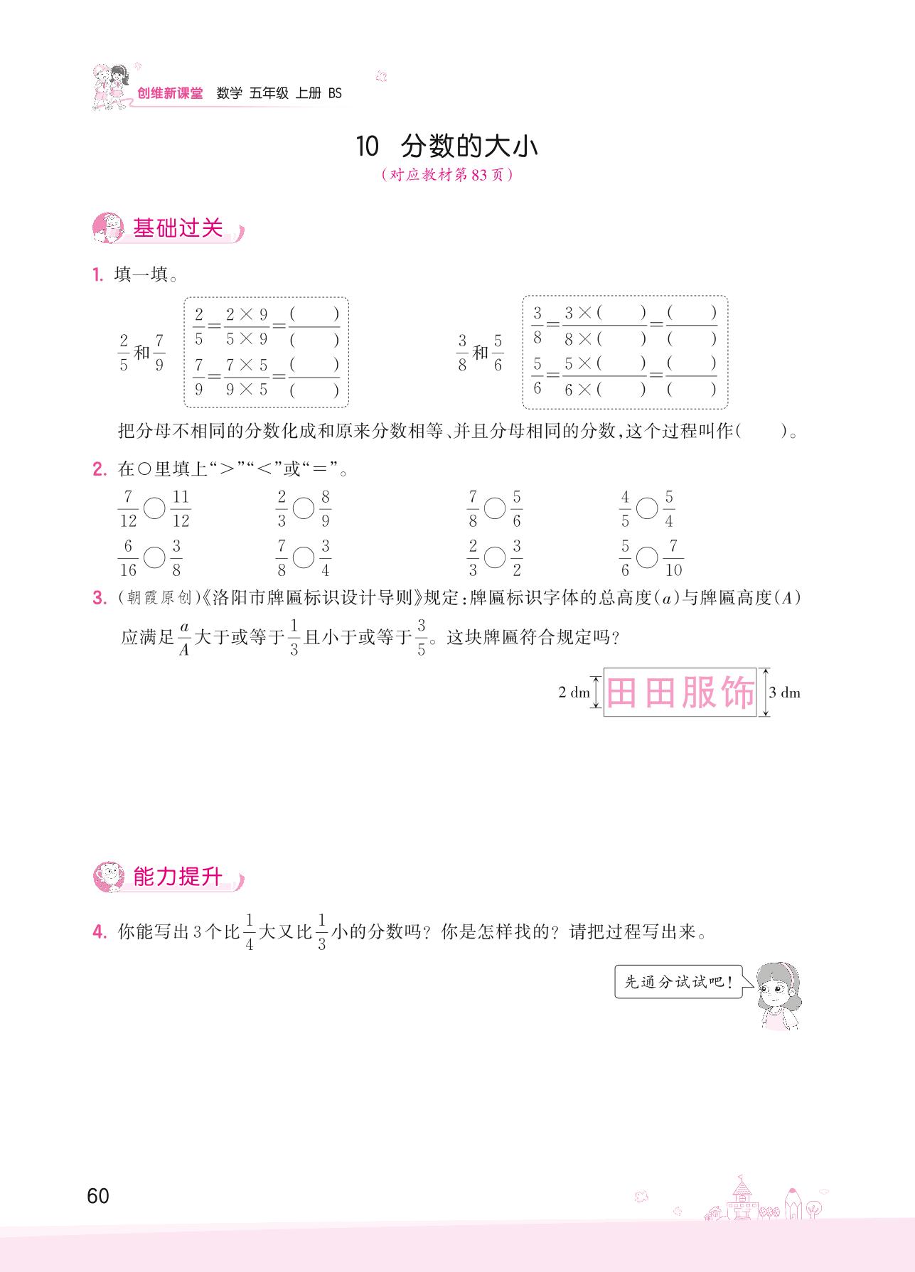 2022上册五年级数学北师版 五 分数的意义——10 分数的大小