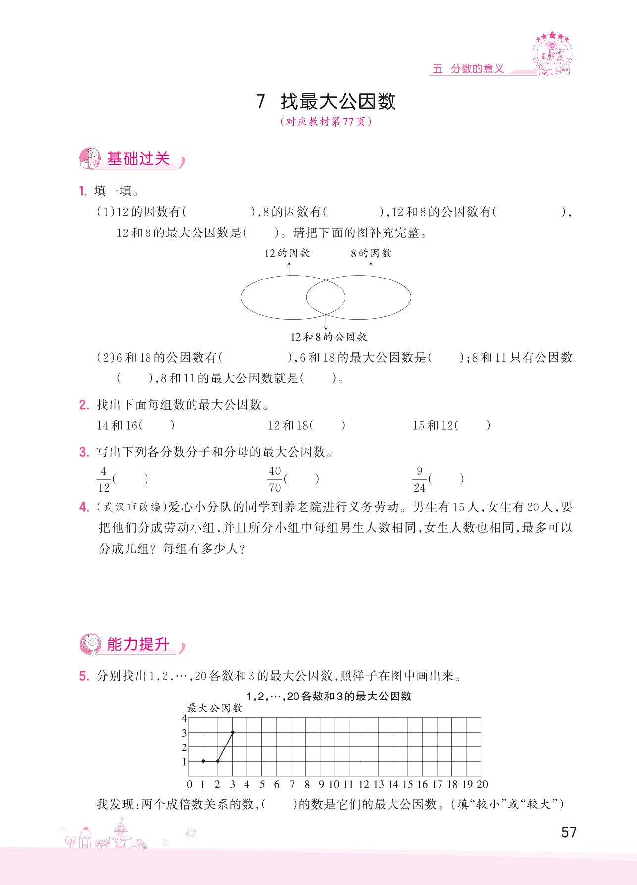 2022上册五年级数学北师版 五 分数的意义——7 找最大公因数