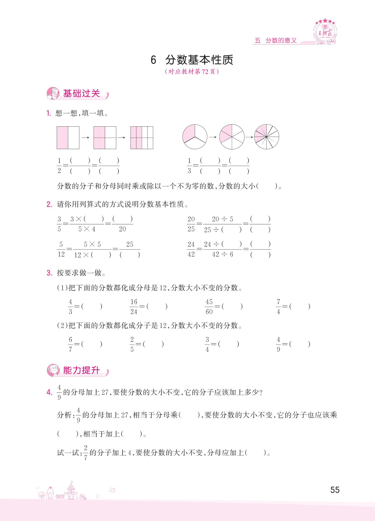 2022上册五年级数学北师版 五 分数的意义——6 分数基本性质