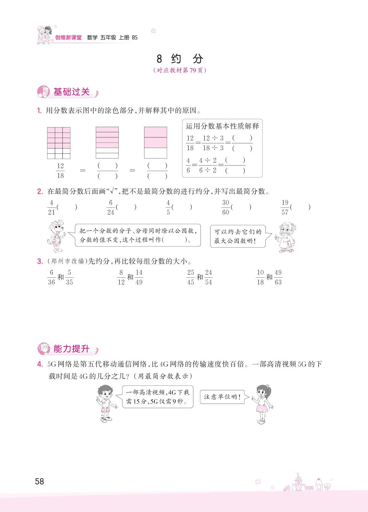 2022上册五年级数学北师版 五 分数的意义——8 约分