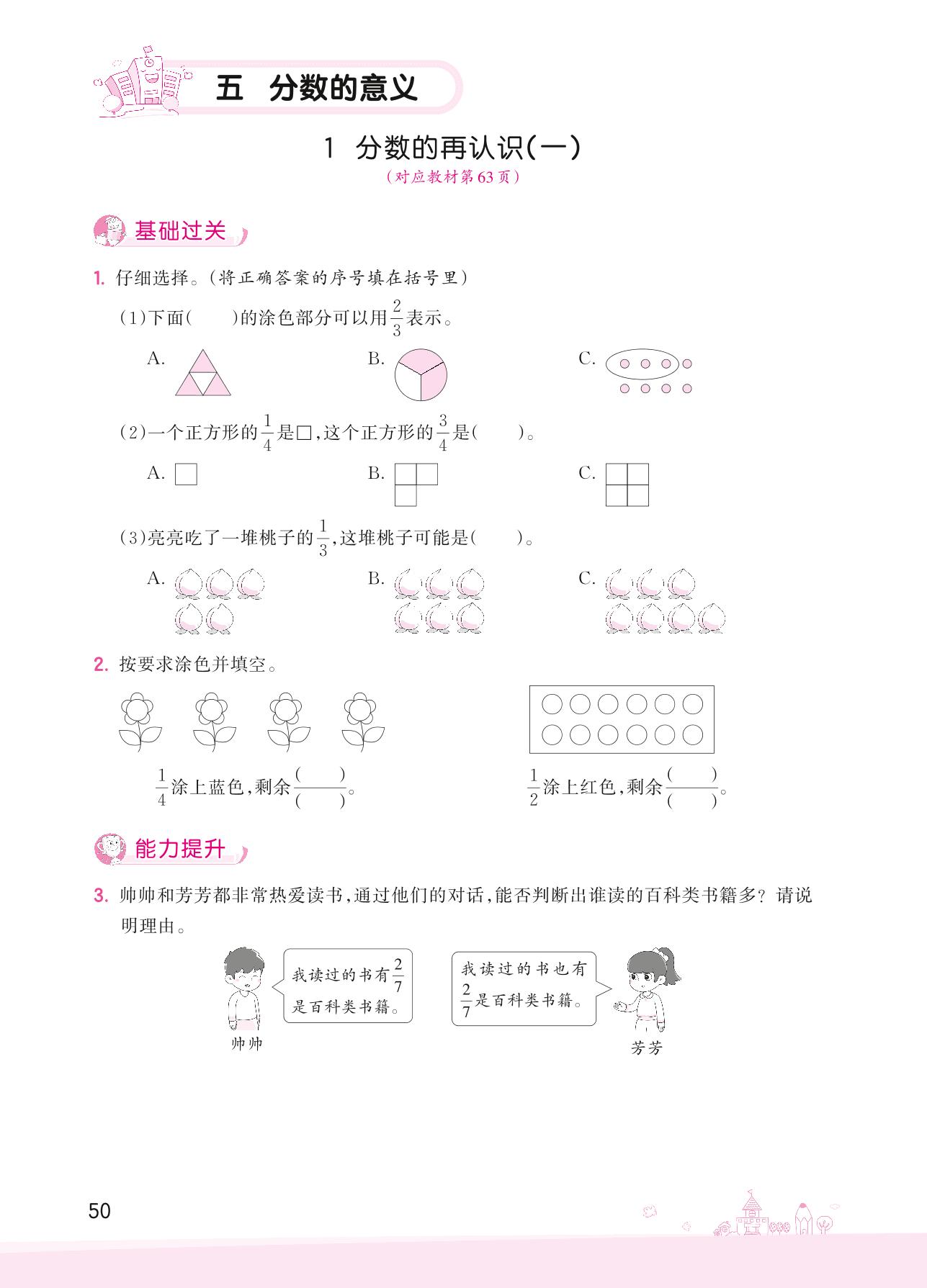 2022上册五年级数学北师版 五 分数的意义——1 分数的再认识(一)