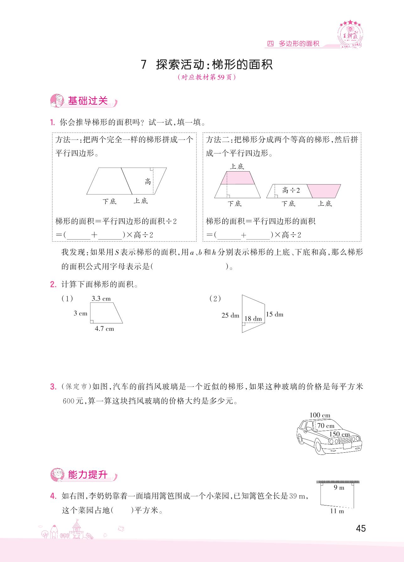 2022上册五年级数学北师版 四 多边形的面积——7 探索活动:梯形的面积