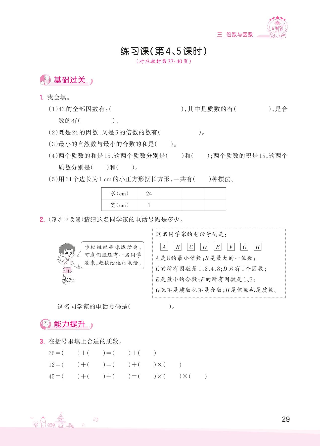 2022上册五年级数学北师版 三 倍数与因数——练习课(第4、5课时)