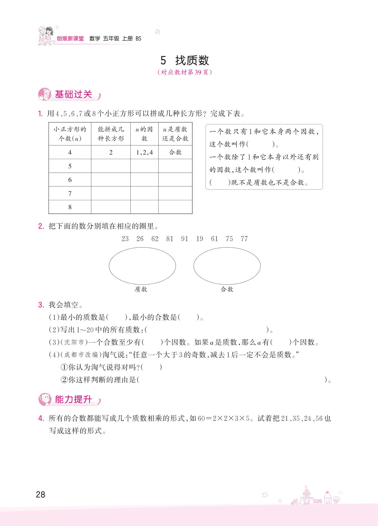 2022上册五年级数学北师版 三 倍数与因数——5 找质数