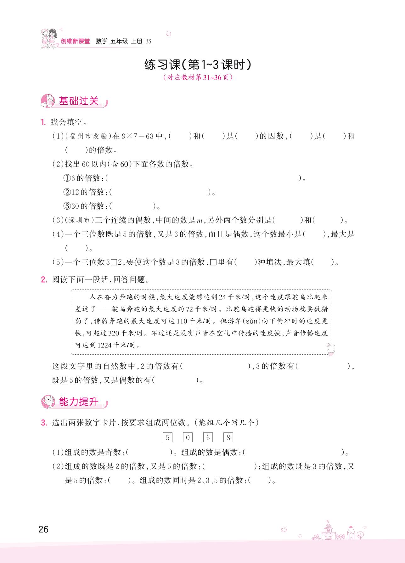 2022上册五年级数学北师版 三 倍数与因数——练习课(第1~3课时)