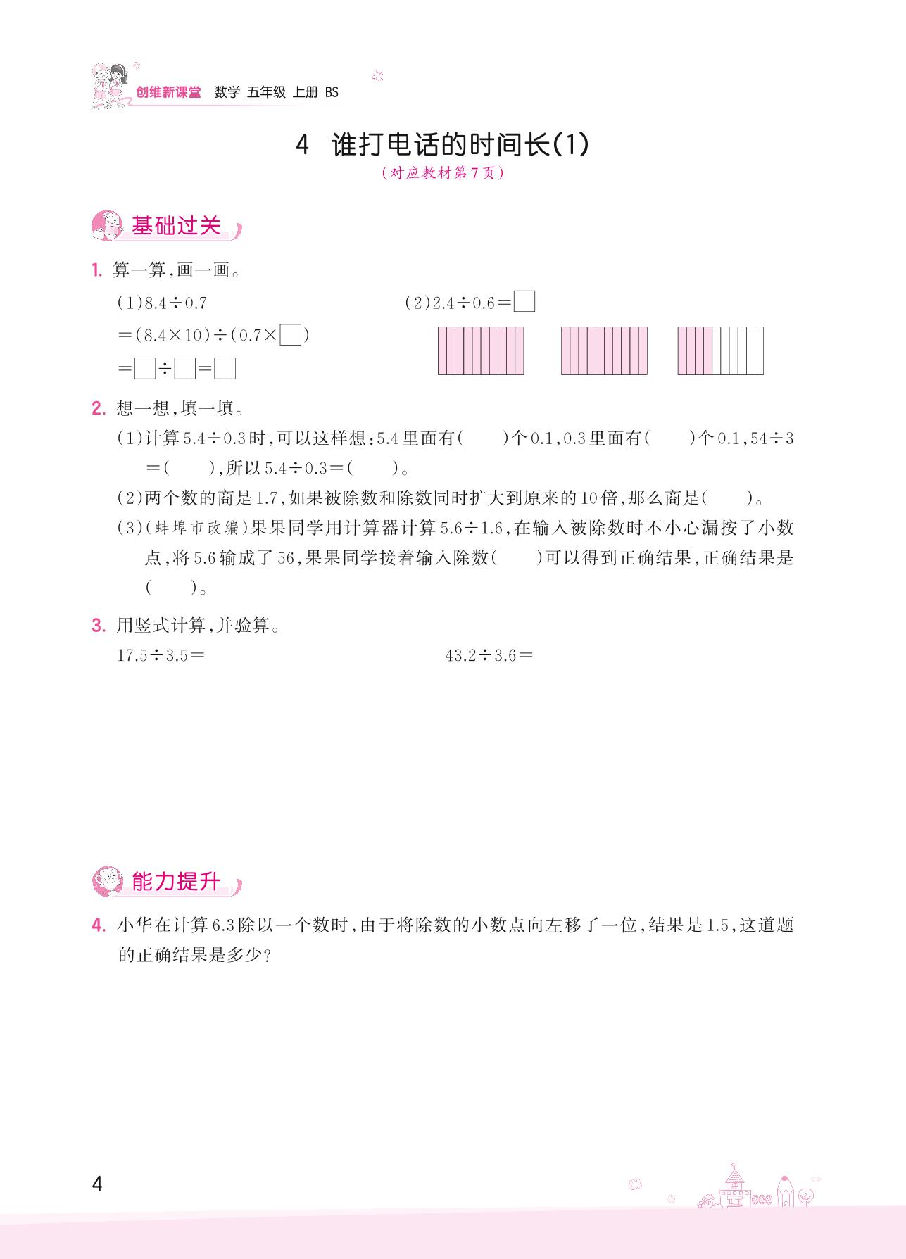 2022上册五年级数学北师版 一 小数除法——4 谁打电话的时间长(1)