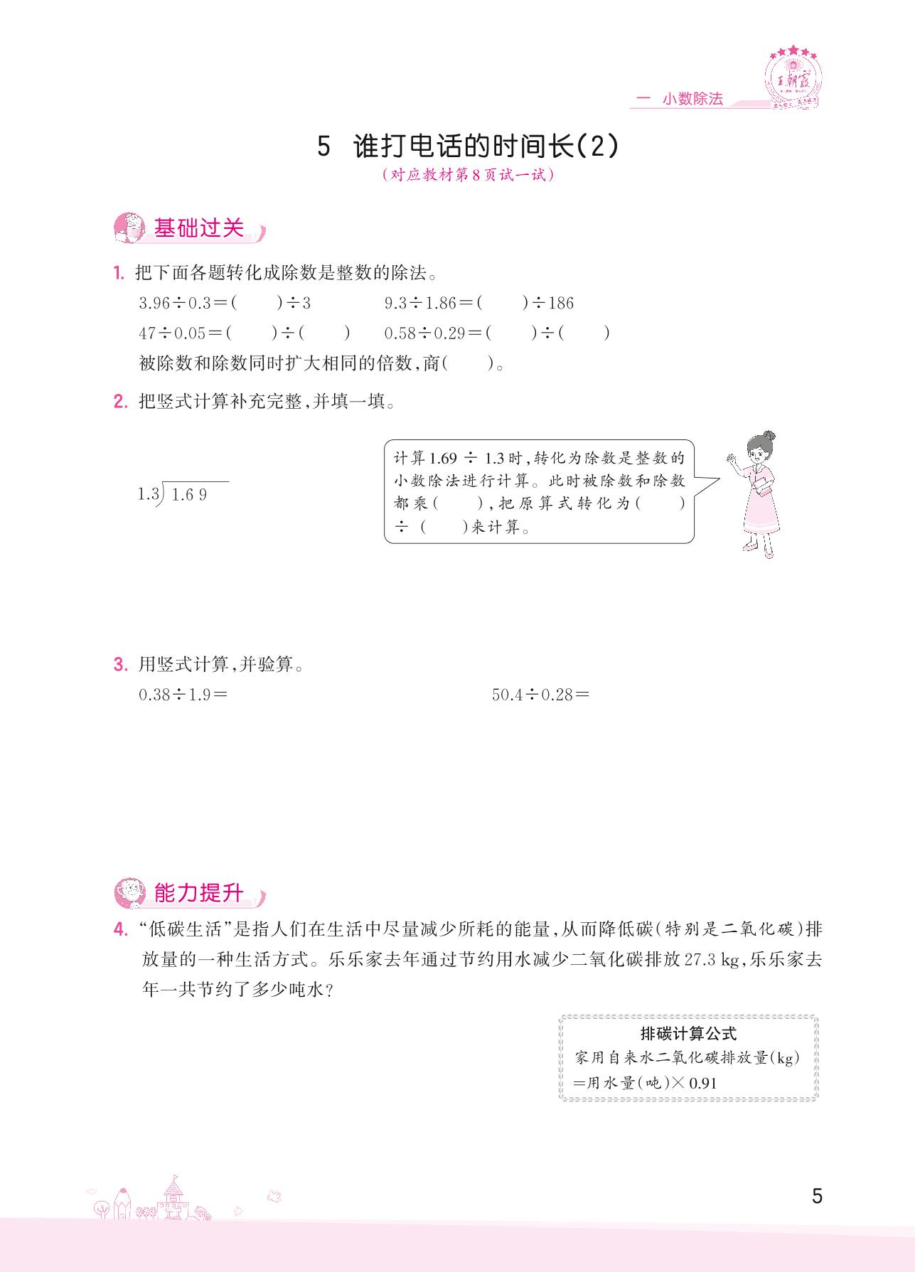 2022上册五年级数学北师版 一 小数除法——5 谁打电话的时间长(2)