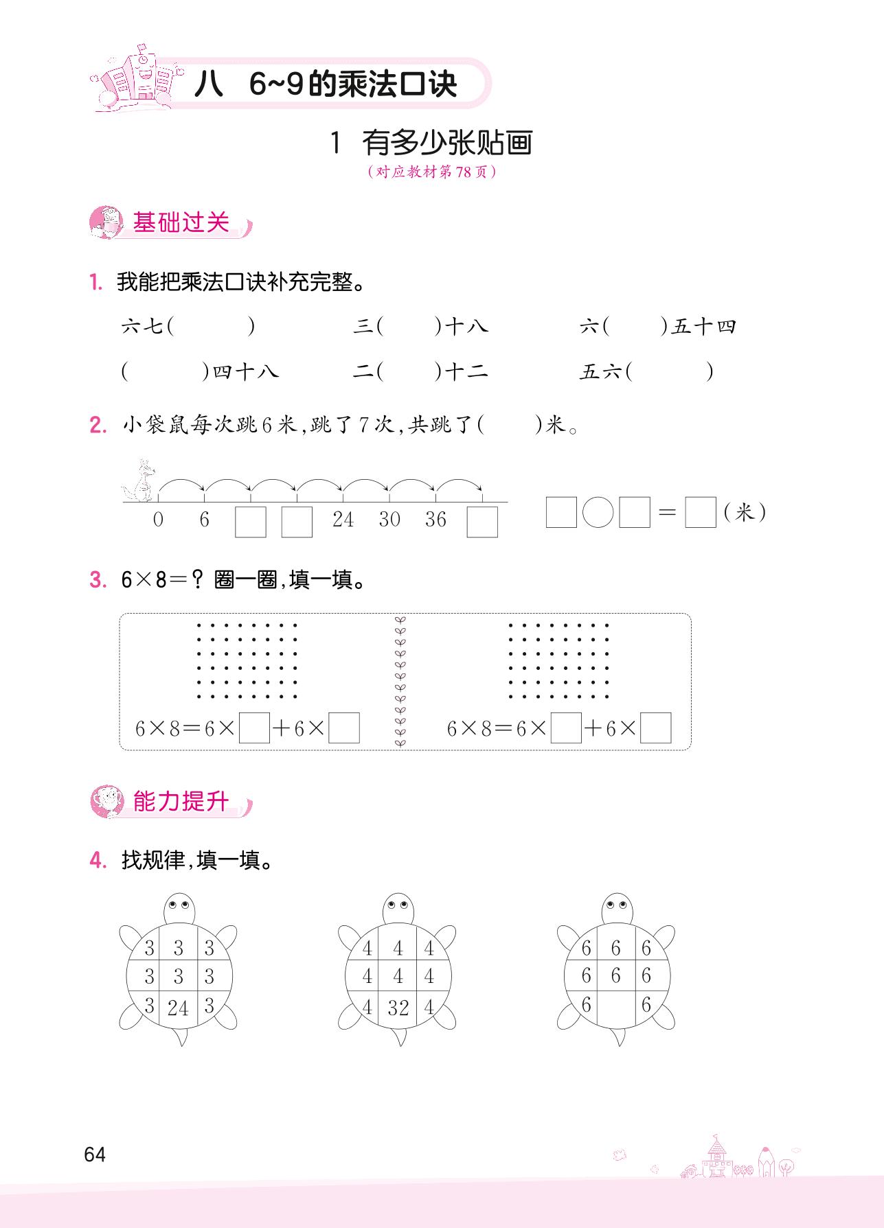 2022上册二年级数学北师版 八 6~9的乘法口诀——1 有多少张贴画