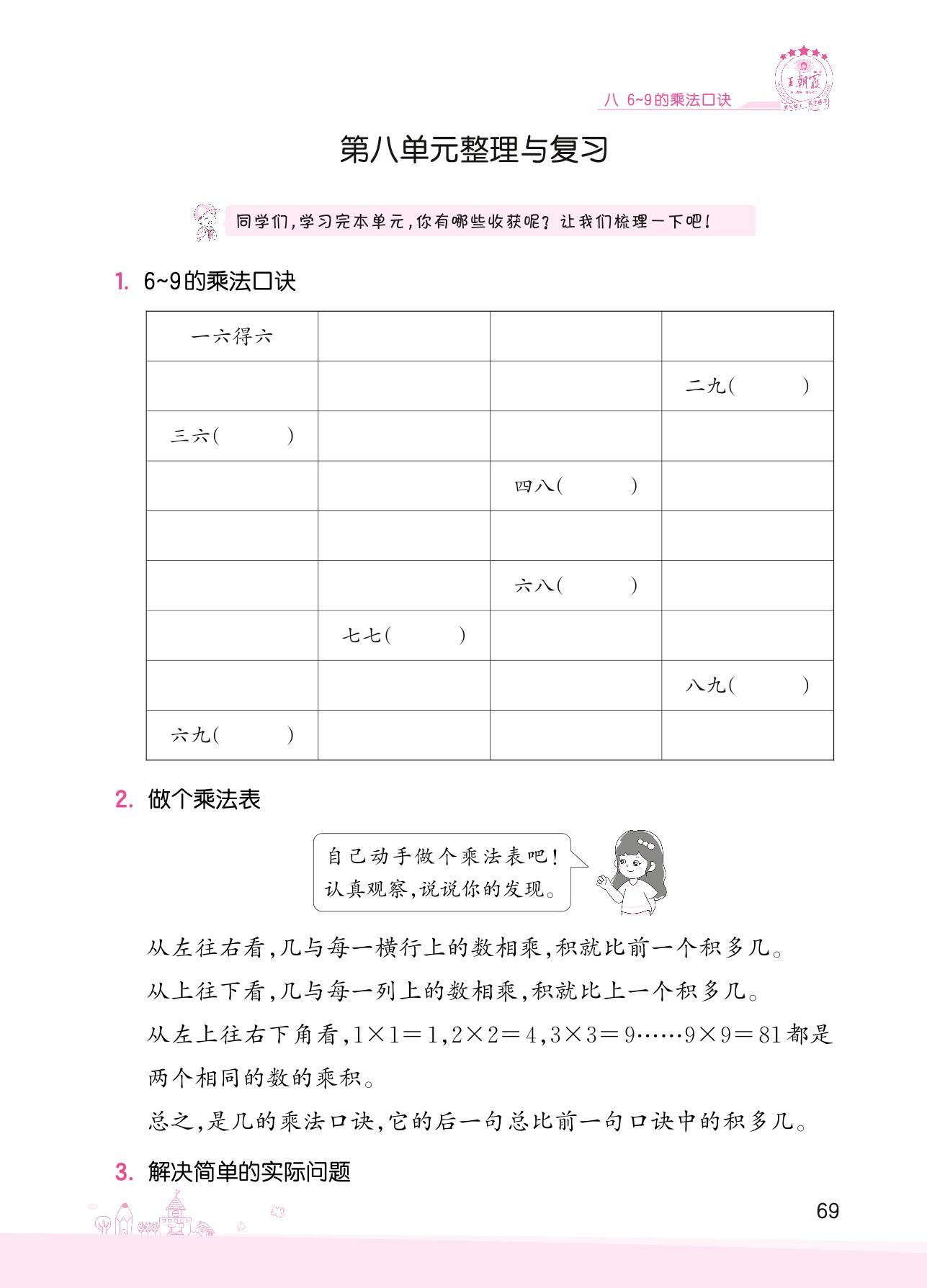 2022上册二年级数学北师版 八 6~9的乘法口诀——第八单元整理与复习