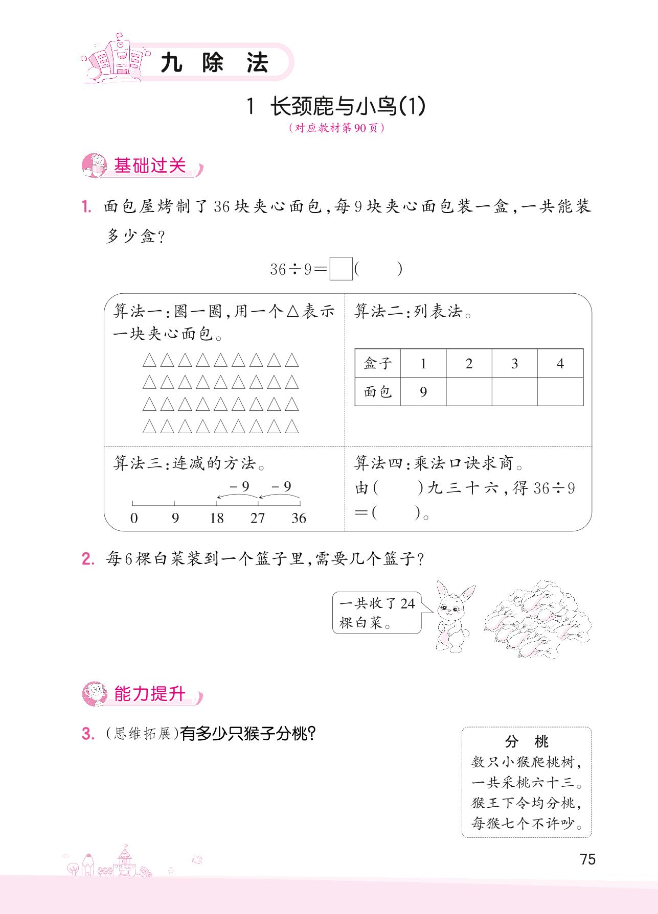 2022上册二年级数学北师版 九 除法——1 长颈鹿与小鸟(1)