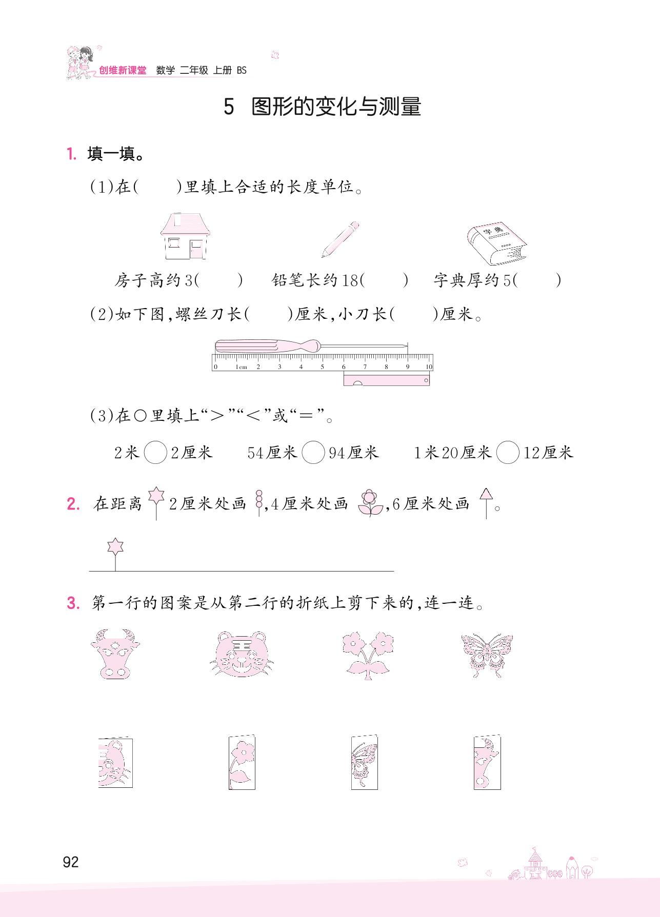 2022上册二年级数学北师版 总复习——5 图形的变化与测量