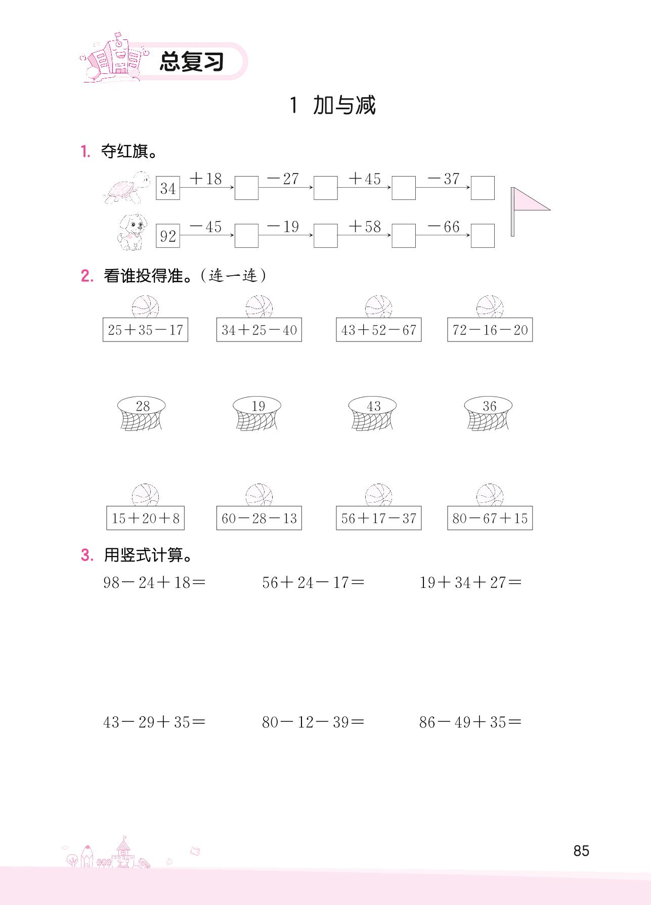 2022上册二年级数学北师版 总复习——1 加与减