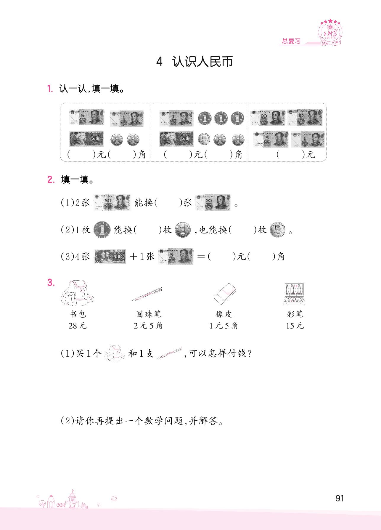 2022上册二年级数学北师版 总复习——4 认识人民币