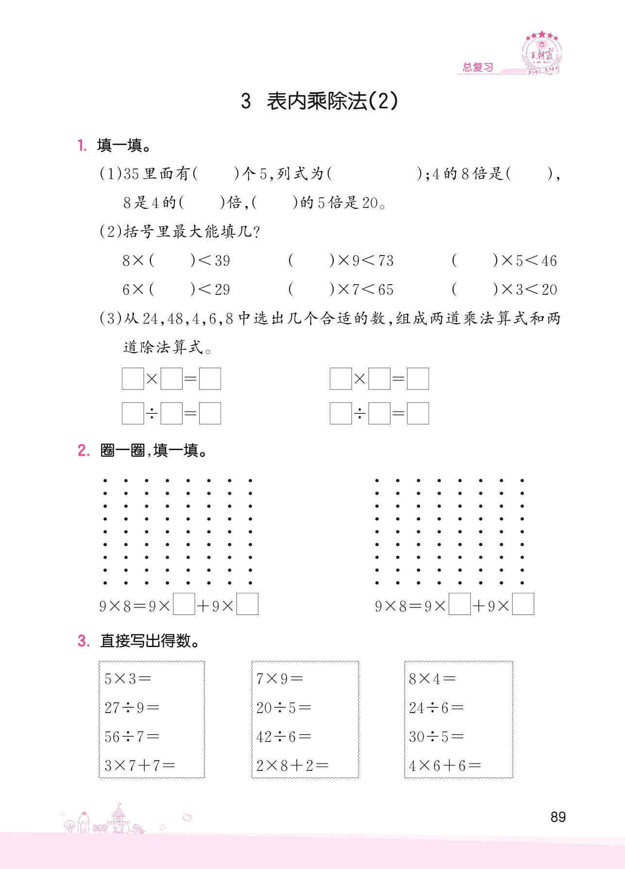 2022上册二年级数学北师版 总复习——3 表内乘除法(2)