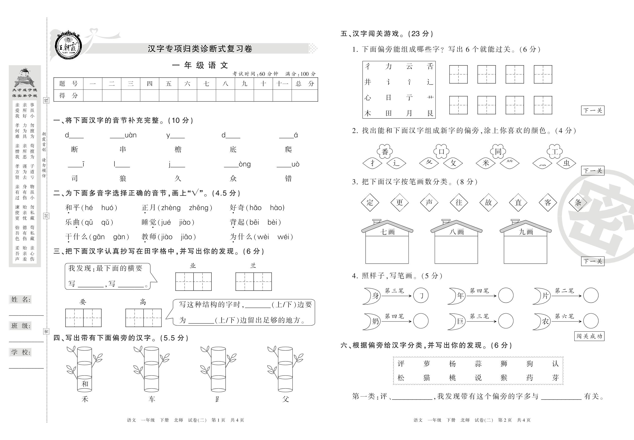 王朝霞期末专项卷一年级下册语文(北师版)_R210731183924【2】