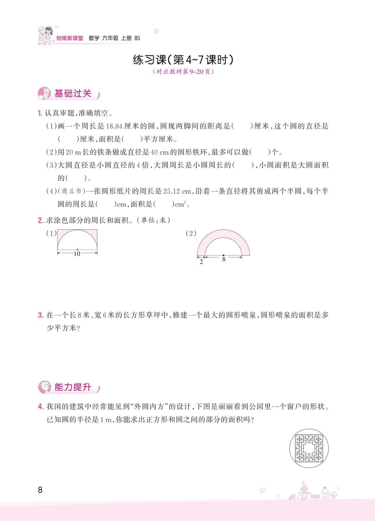 2022上册六年级数学北师版 一 圆——练习课(第4~7课时)