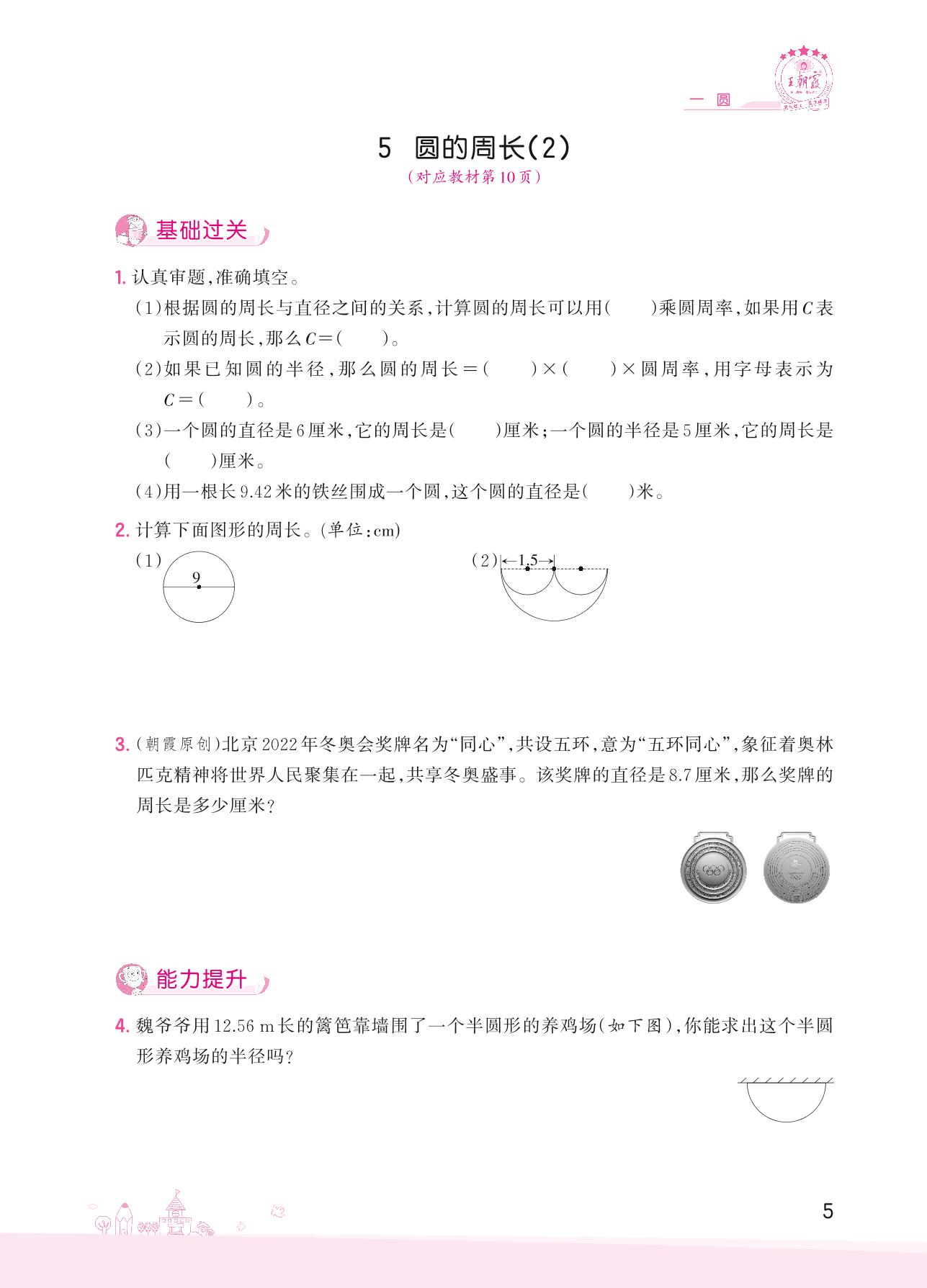 2022上册六年级数学北师版 一 圆——5 圆的周长(2)