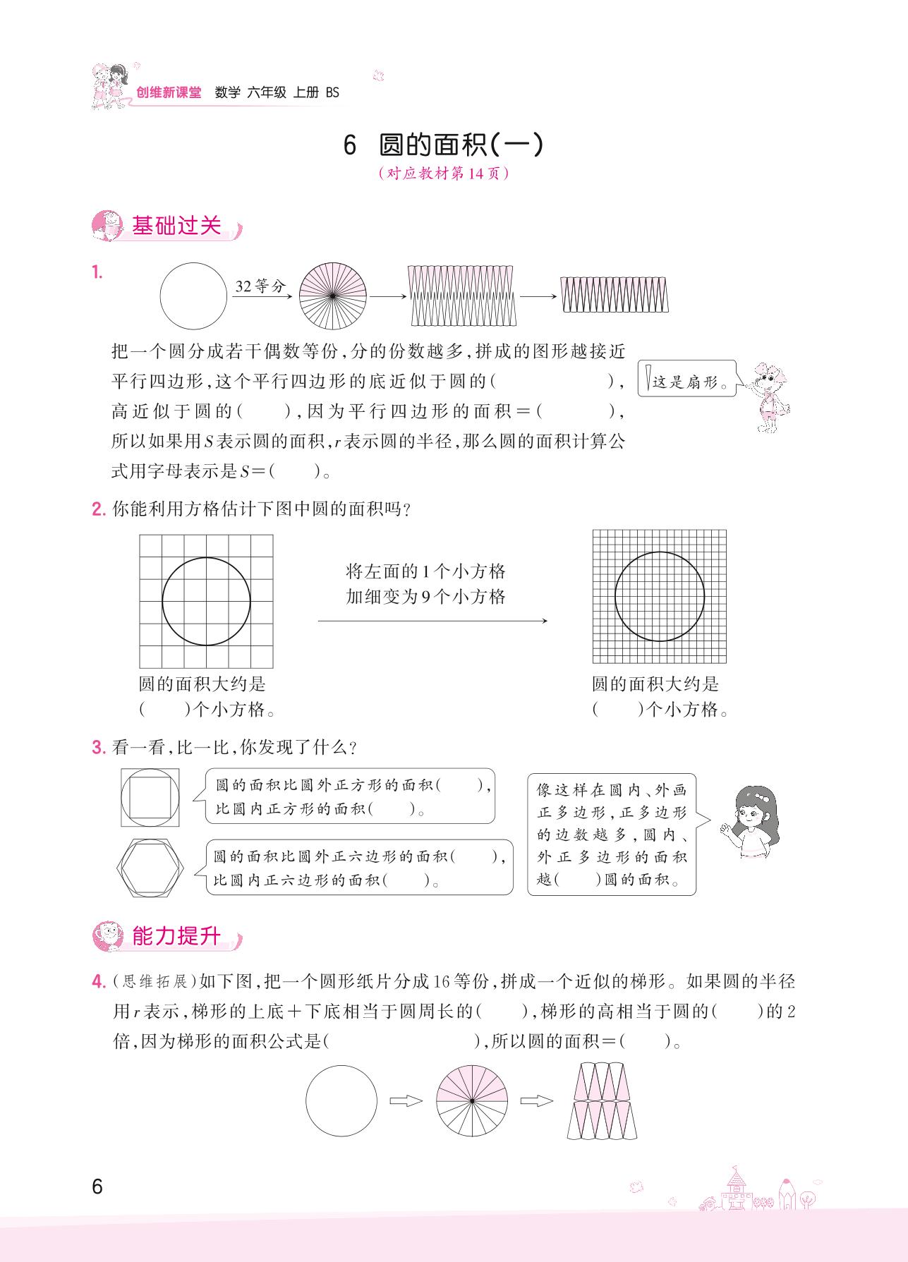 2022上册六年级数学北师版 一 圆——6 圆的面积(一)