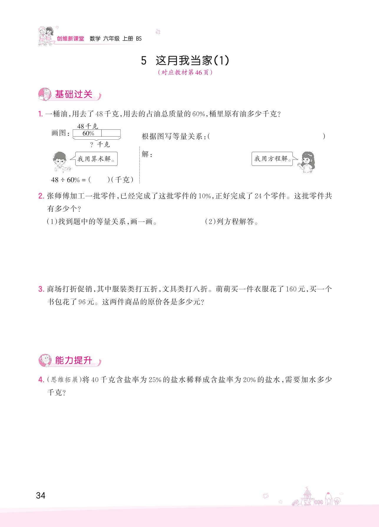 2022上册六年级数学北师版 四 百分数——5 这月我当家(1)