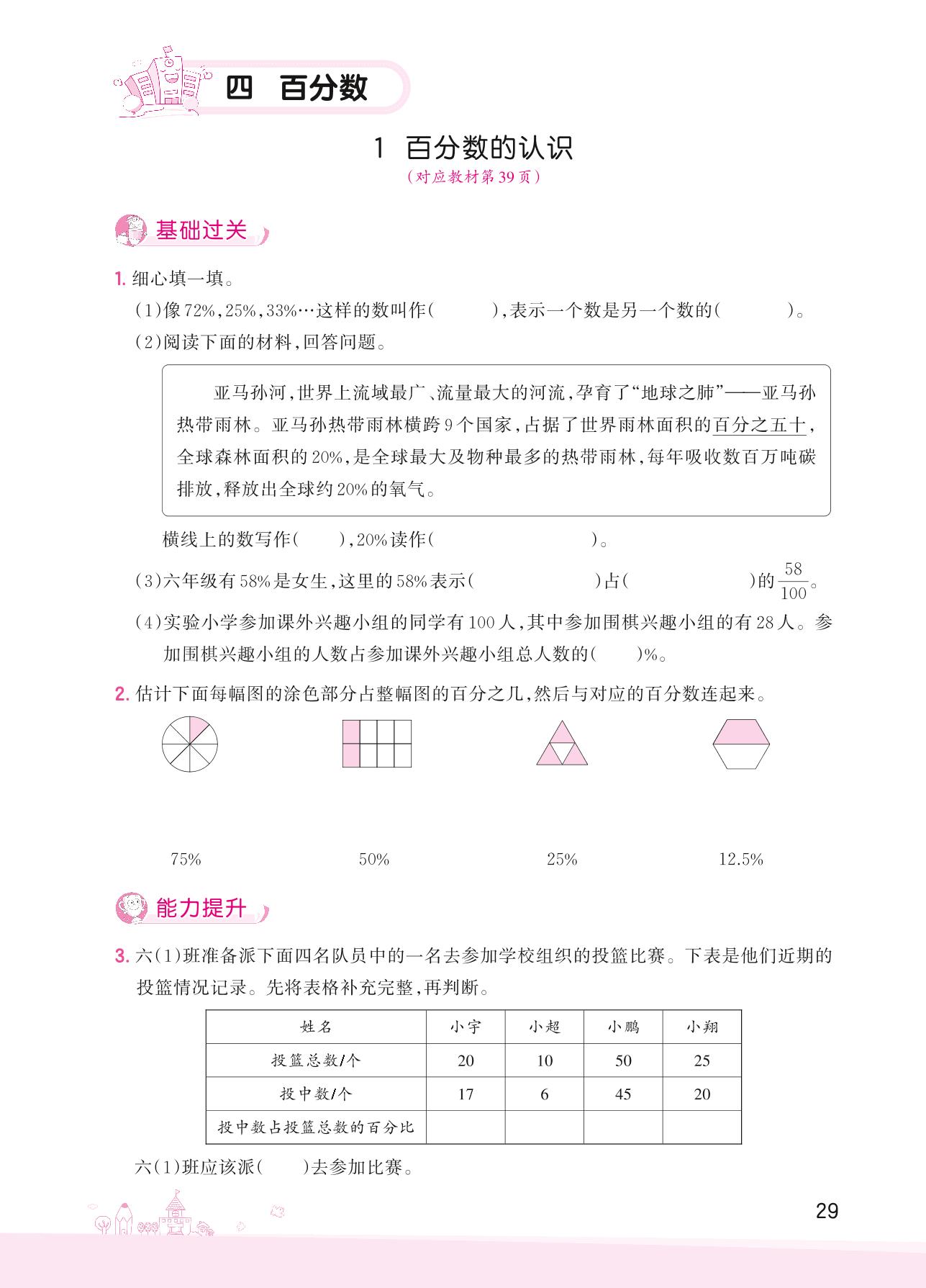 2022上册六年级数学北师版 四 百分数——1 百分数的认识