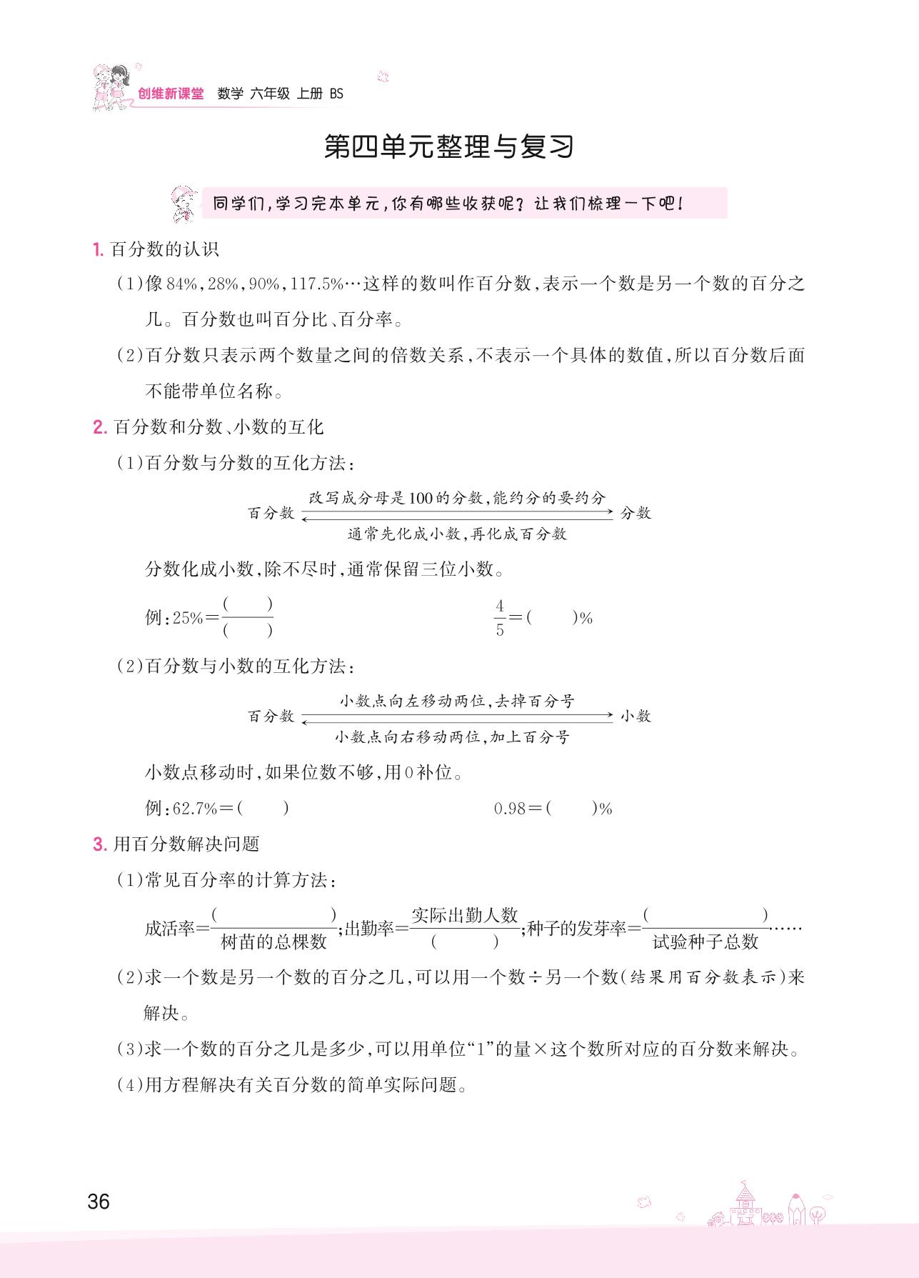 2022上册六年级数学北师版 四 百分数——第四单元整理与复习