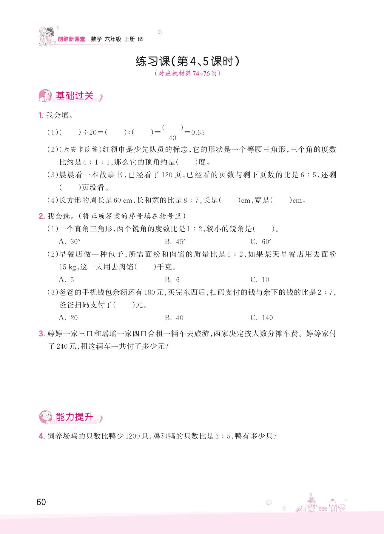 2022上册六年级数学北师版 六 比的认识——练习课(第4、5课时)