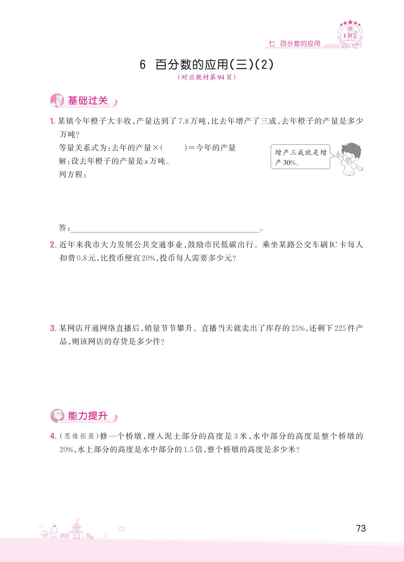 2022上册六年级数学北师版 七 百分数的应用——6 百分数的应用(三)(2)