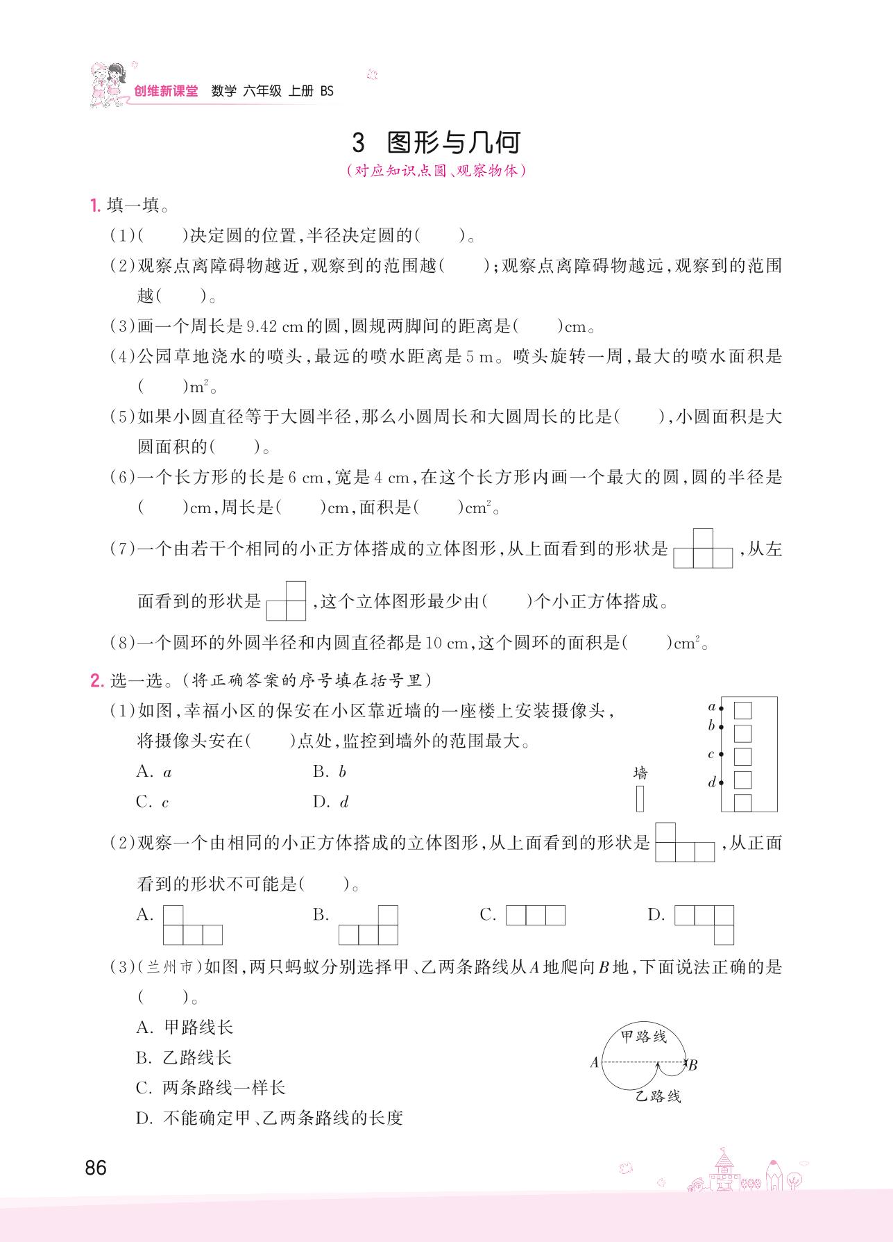 2022上册六年级数学北师版 总复习——3 图形与几何