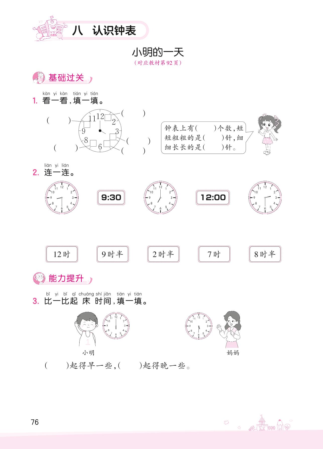 2022上册一年级数学北师版 八 认识钟表——小明的一天