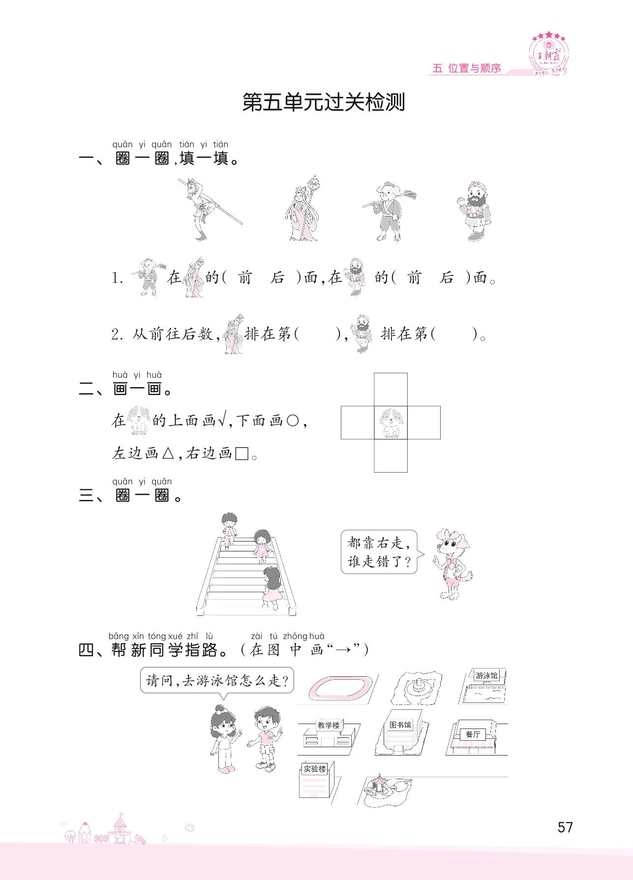 2022上册一年级数学北师版 五 位置与顺序——第五单元过关检测