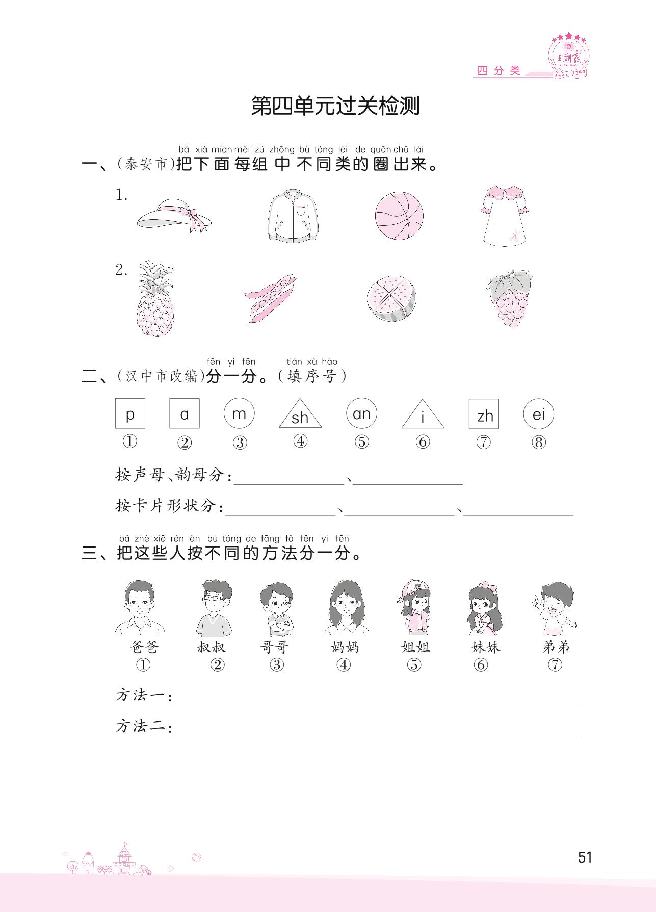 2022上册一年级数学北师版 四 分类——第四单元过关检测