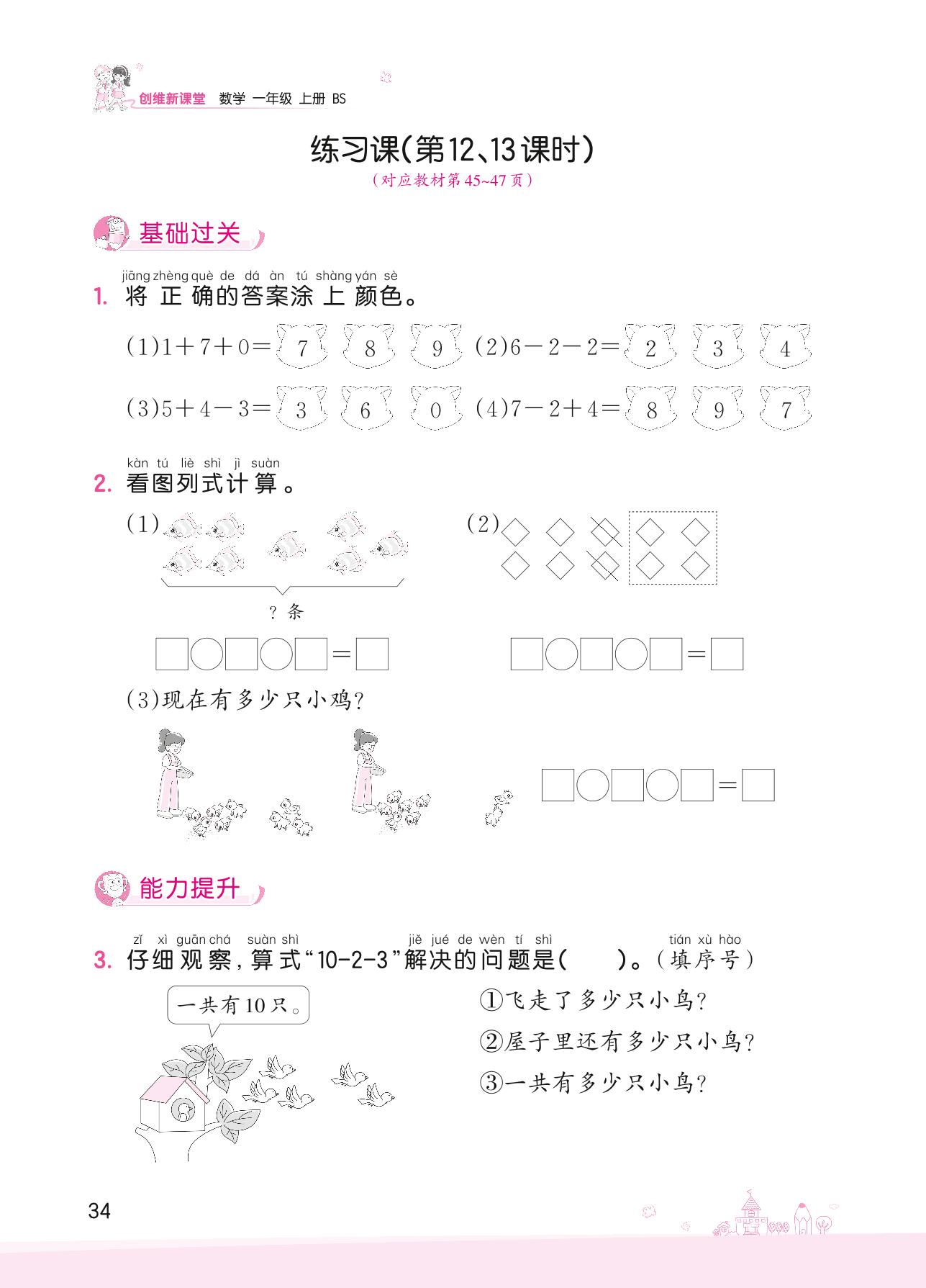 2022上册一年级数学北师版 三 加与减(一)——练习课(第12、13课时)