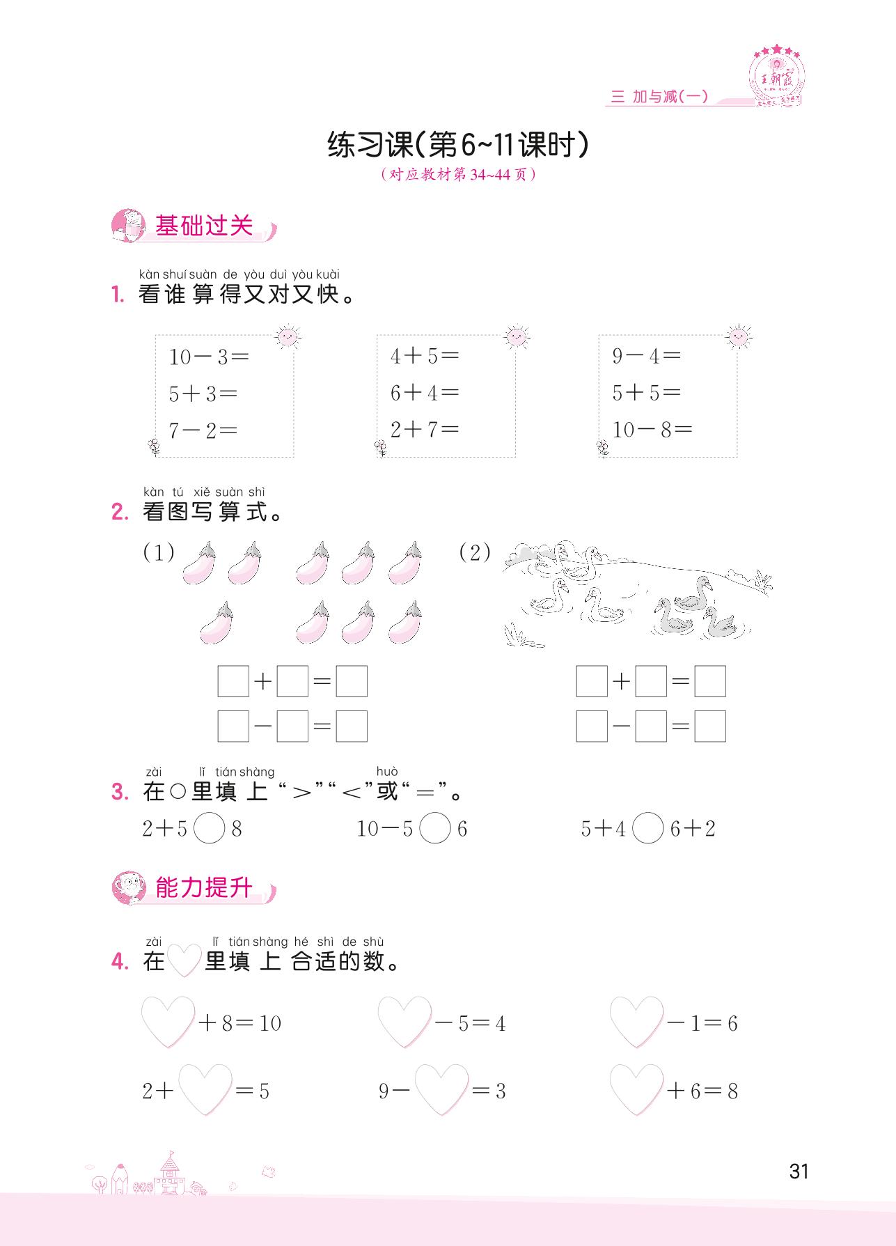 2022上册一年级数学北师版 三 加与减(一)——练习课(第6~11课时)