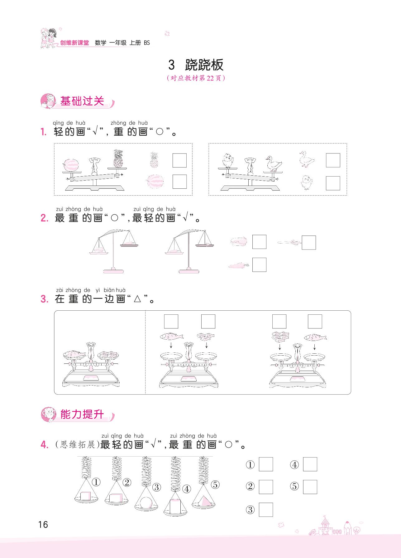 2022上册一年级数学北师版 二 比较——3 跷跷板