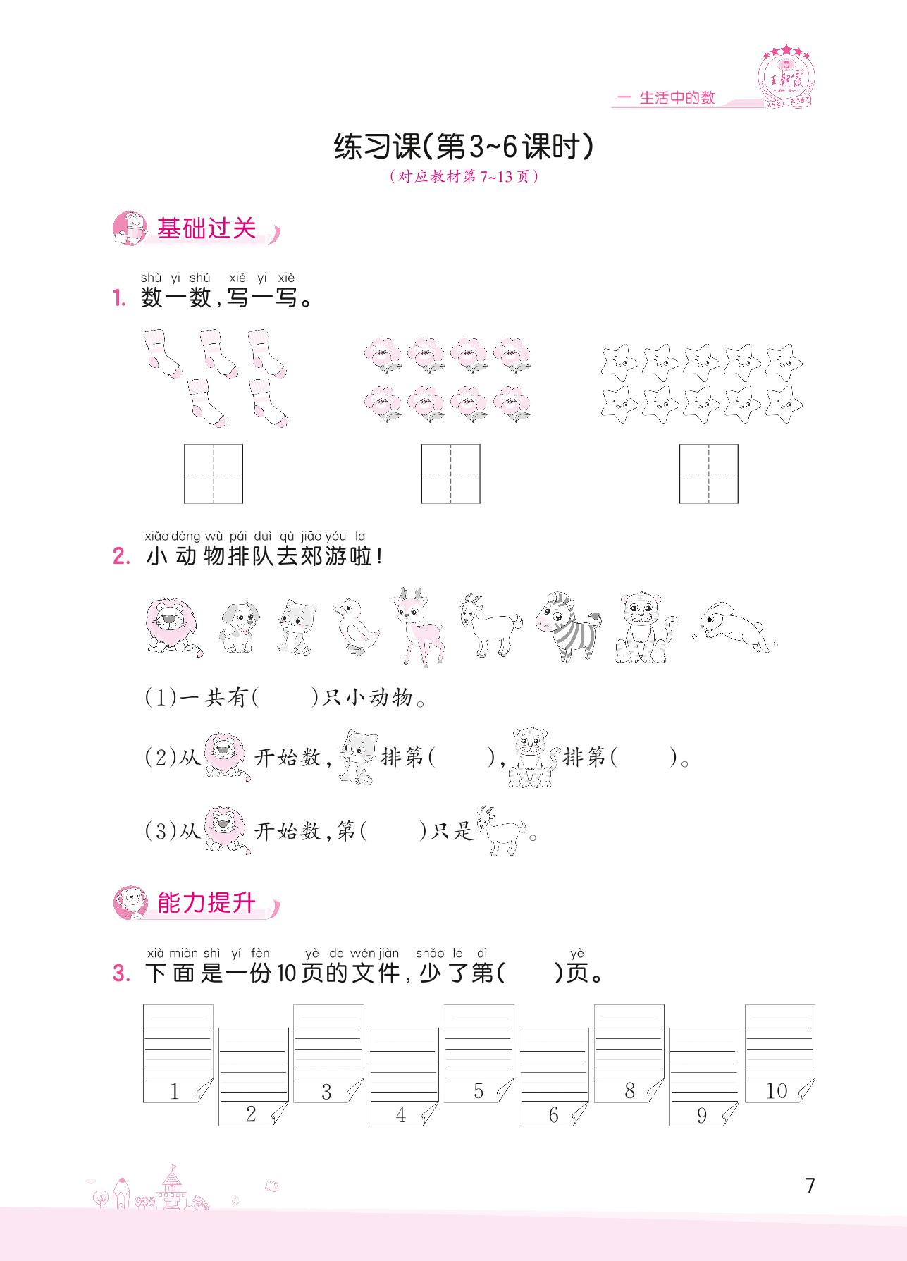 2022上册一年级数学北师版 一 生活中的数——练习课(第3~6课时)