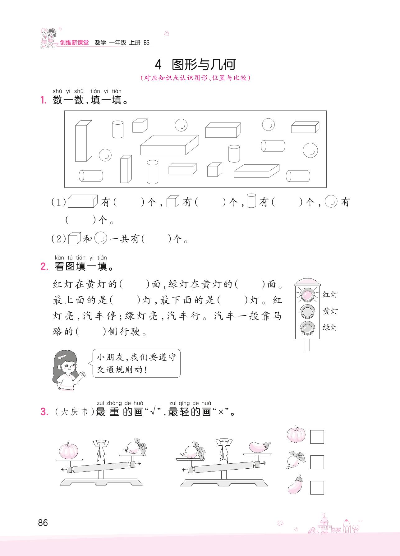 2022上册一年级数学北师版 总复习——4 图形与几何