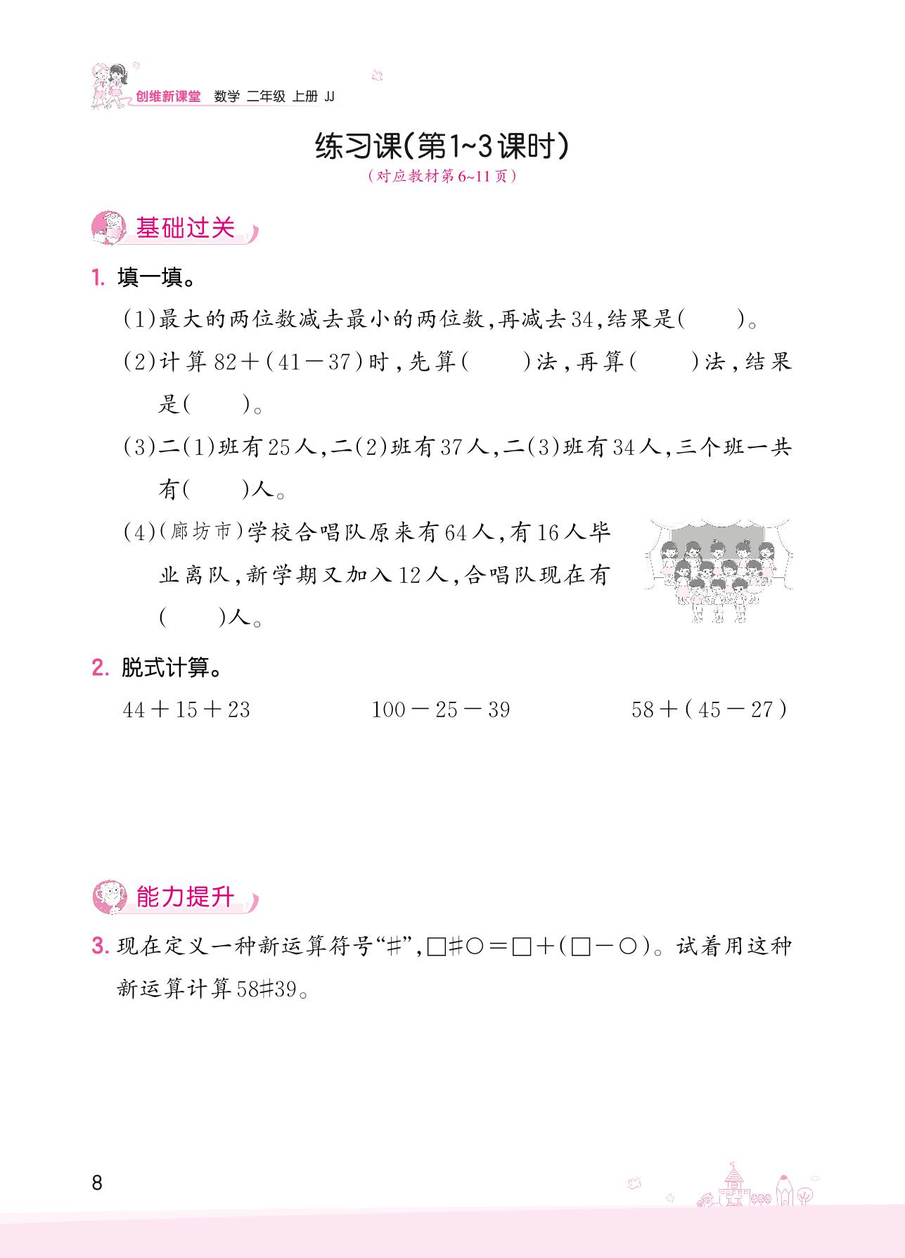 2022上册二年级数学冀教版 二 加减混合运算——练习课(第1~3课时)