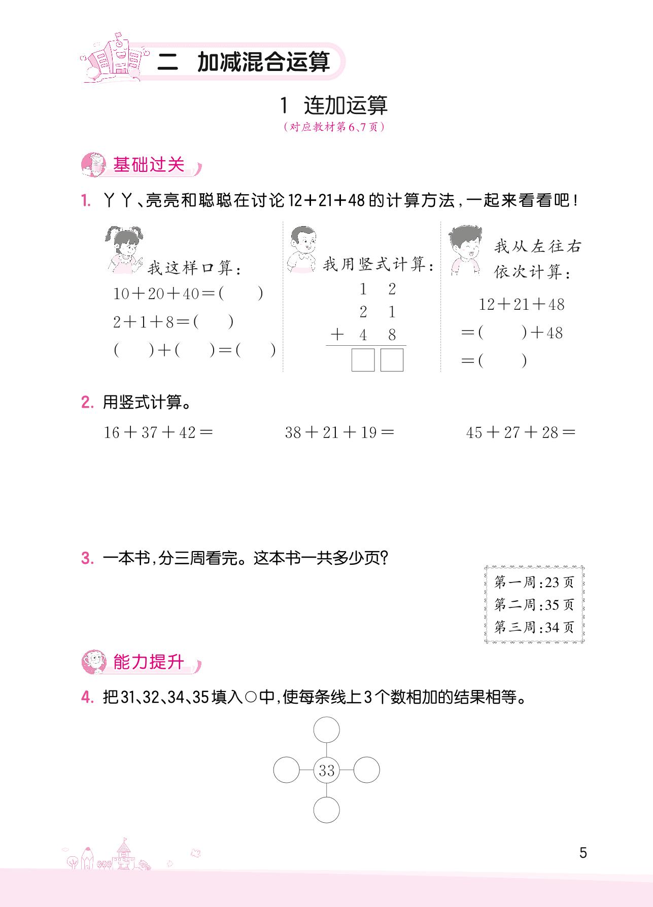 2022上册二年级数学冀教版 二 加减混合运算——1 连加运算