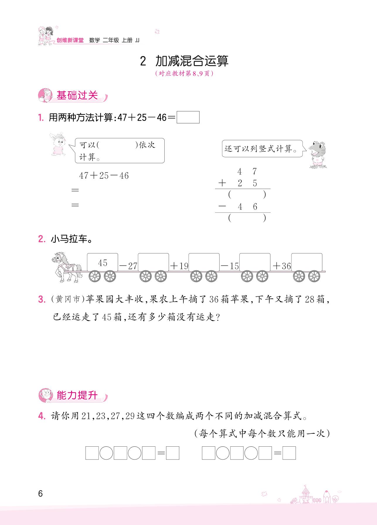 2022上册二年级数学冀教版 二 加减混合运算——2 加减混合运算
